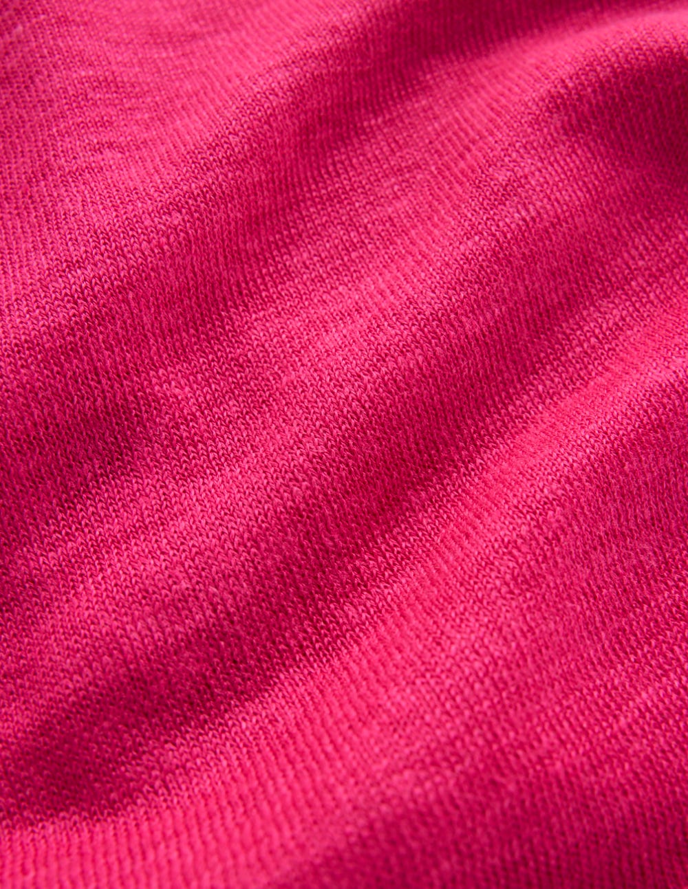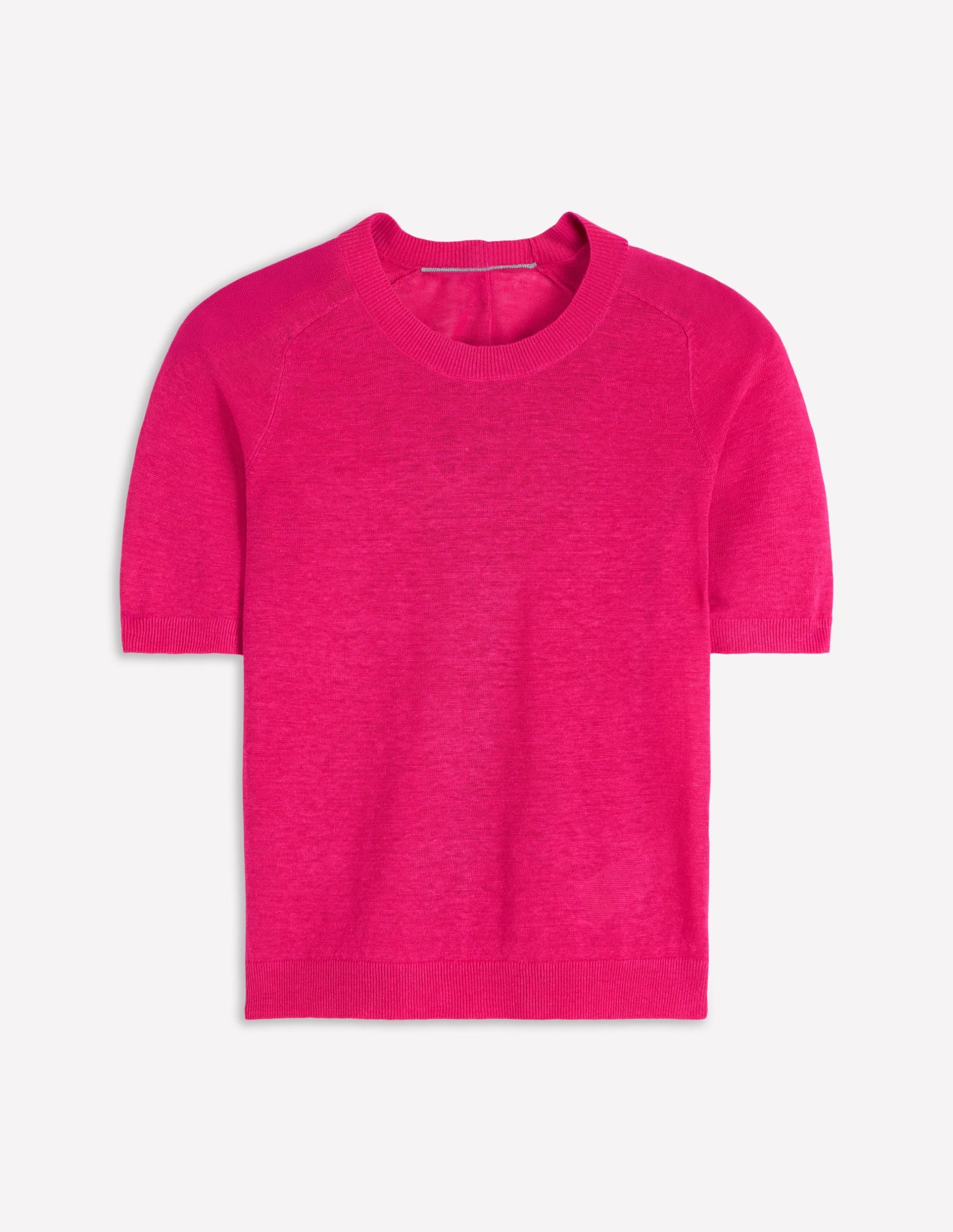 Crafted from 100% lightweight linen with short sleeves and in a range of bold colours. this simple style combines the best bits of a casual T-shirt and an elevated knit. It’s primed for Easter and summer parties. but will look great with denim shorts too. The big twist We added buttons down the back.