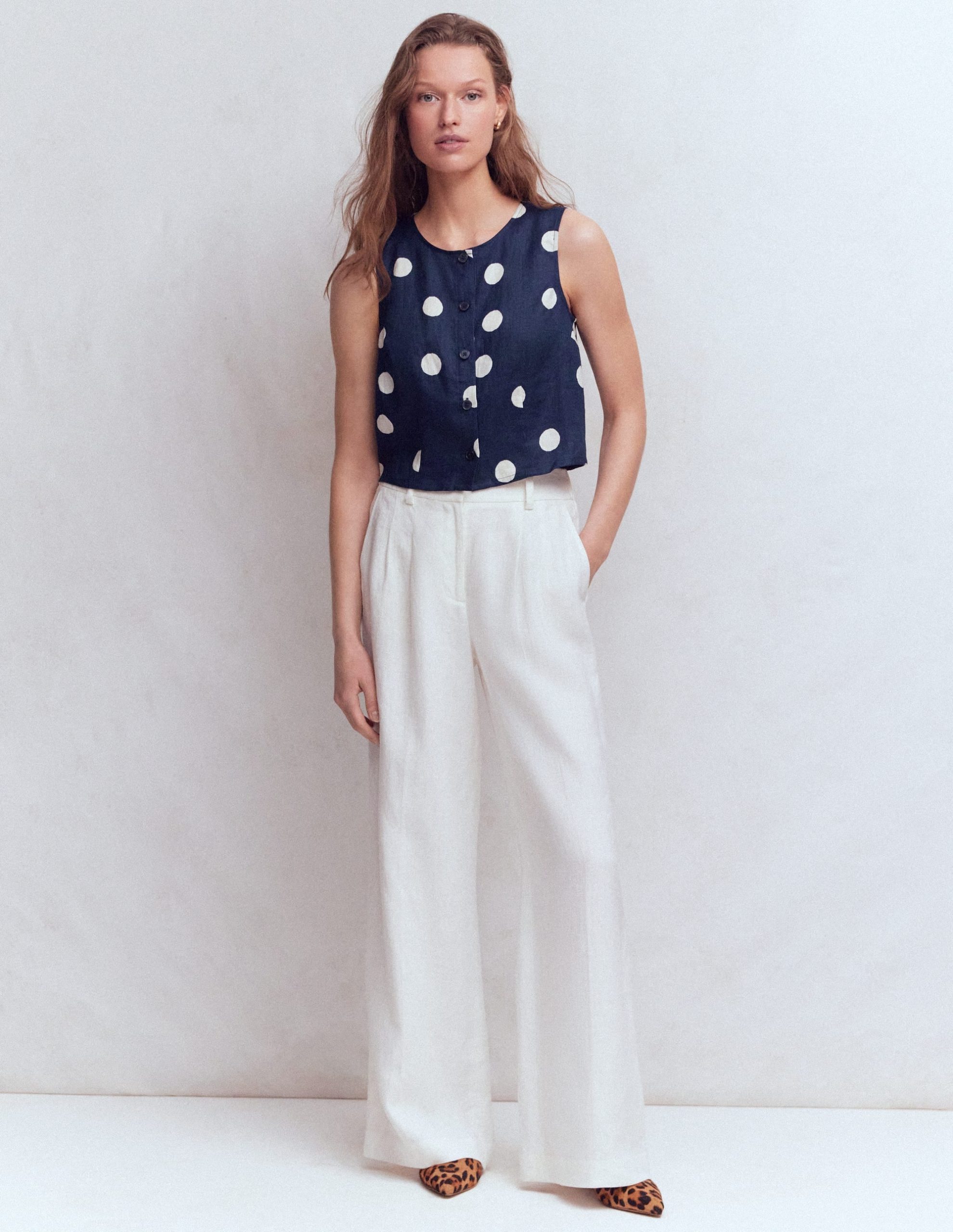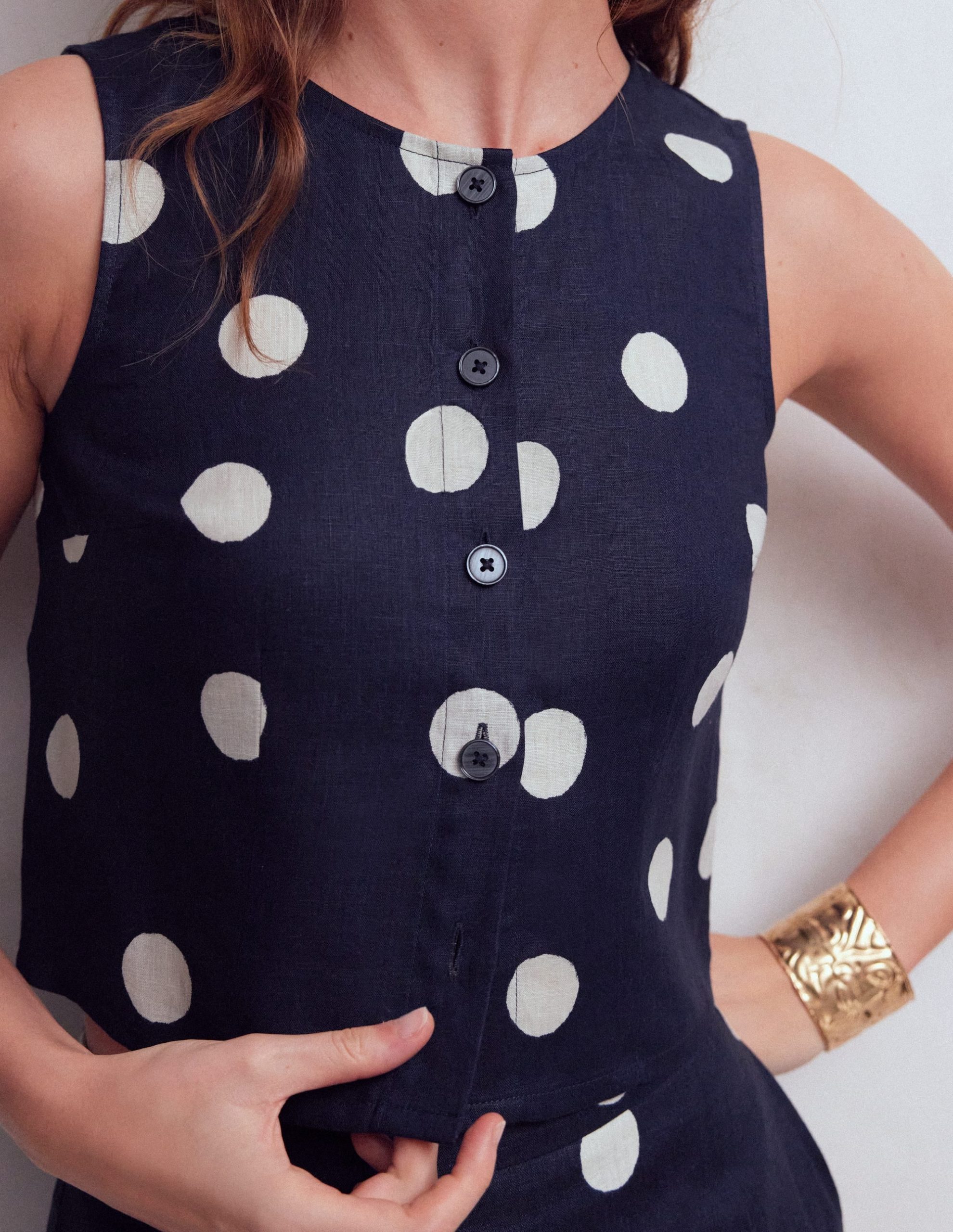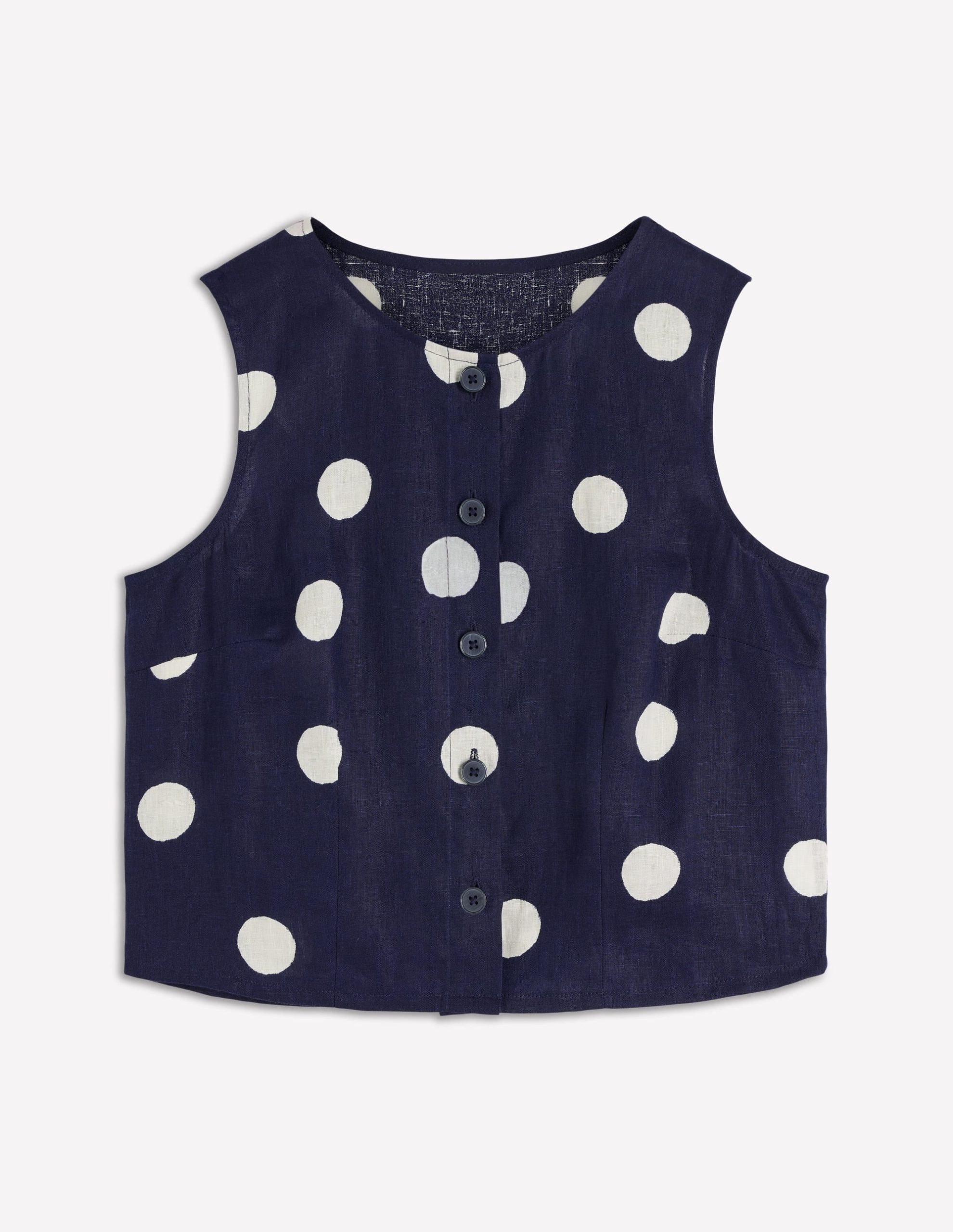 Andrea Linen Shell Top-French Navy. Painted Dot