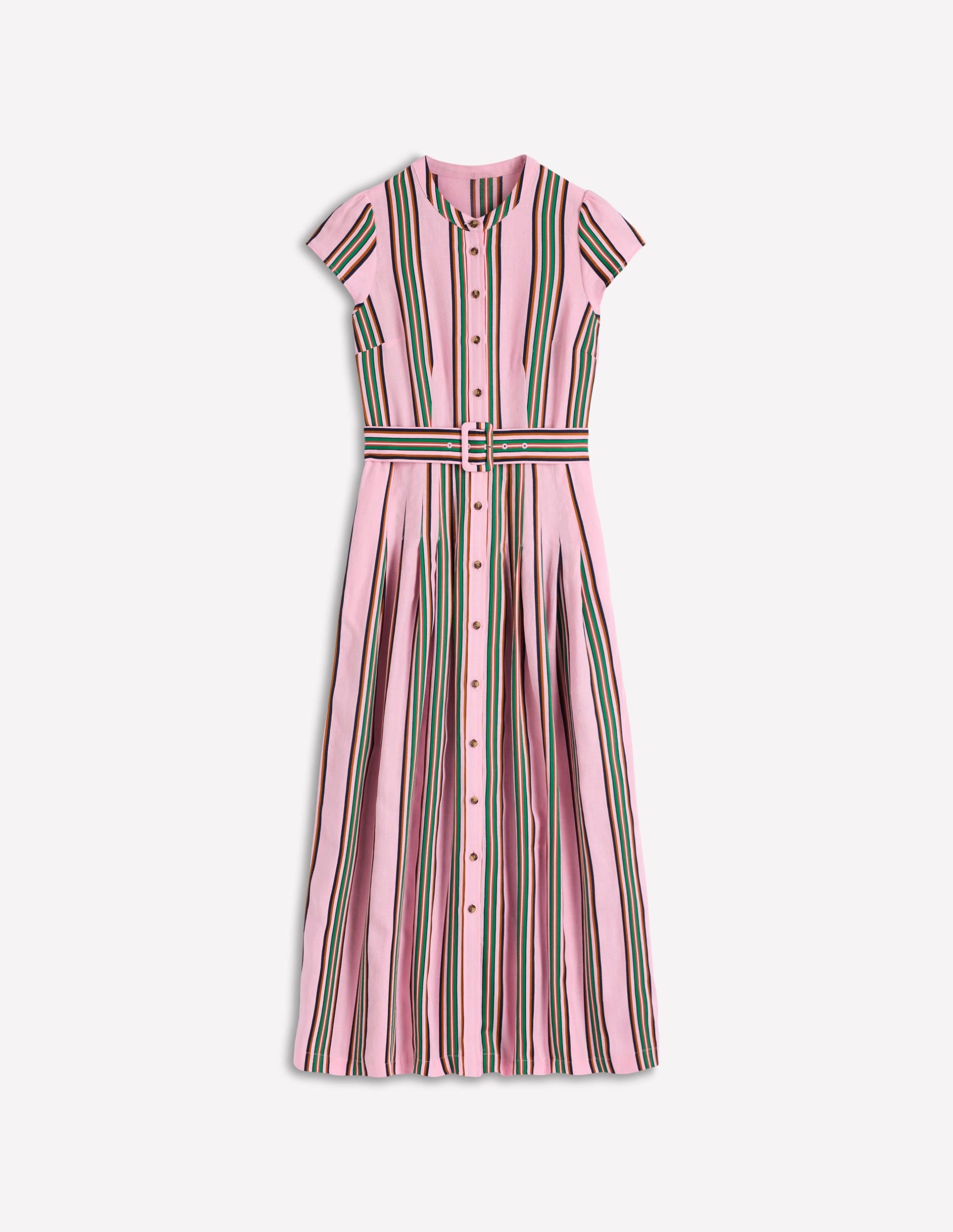 Crafted from a linen-cotton blend. this midi dress with cute cap sleeves will keep you cool in warmer months ahead (they’re coming. we promise). It has statement Boden stripes with a matching belt.