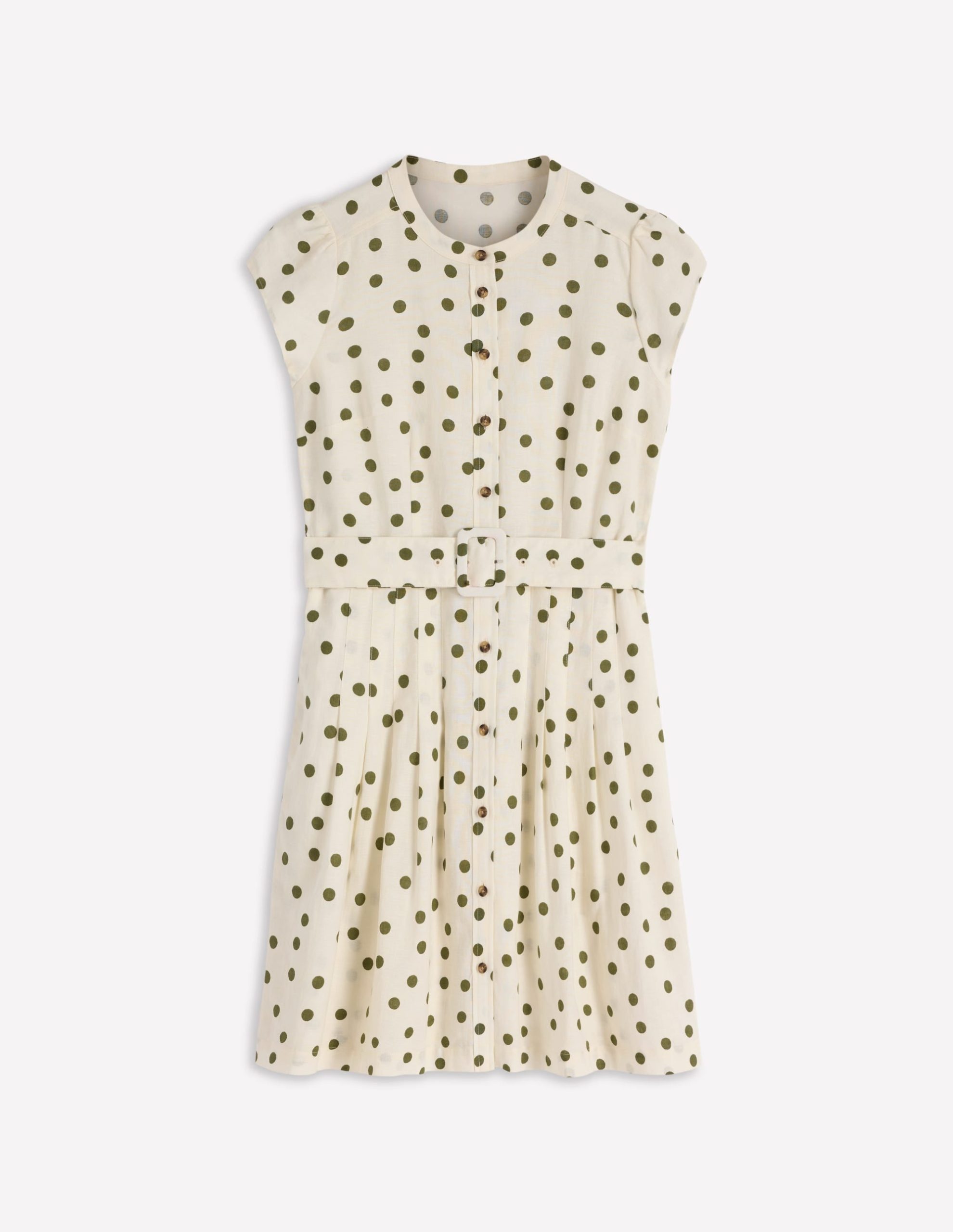 Arabella Short Linen Dress-Ivory Painted Dot Spaced