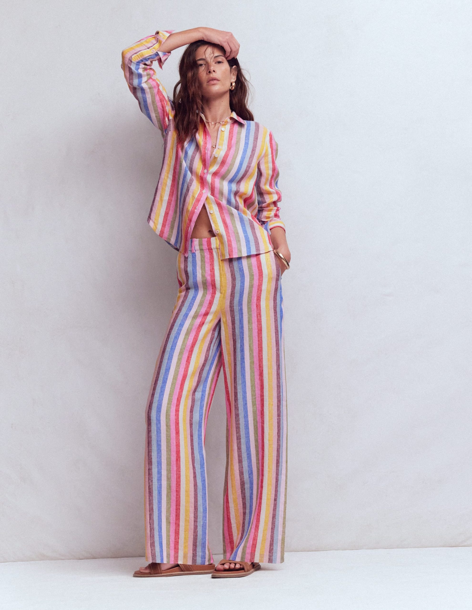 Our bestselling Belgravia trousers in 100% luxurious linen. This tailored wide-leg pair are lightweight and sit comfortably on the natural waist. The perfect style to carry you from work-to-weekend looks from now into warmer weather.