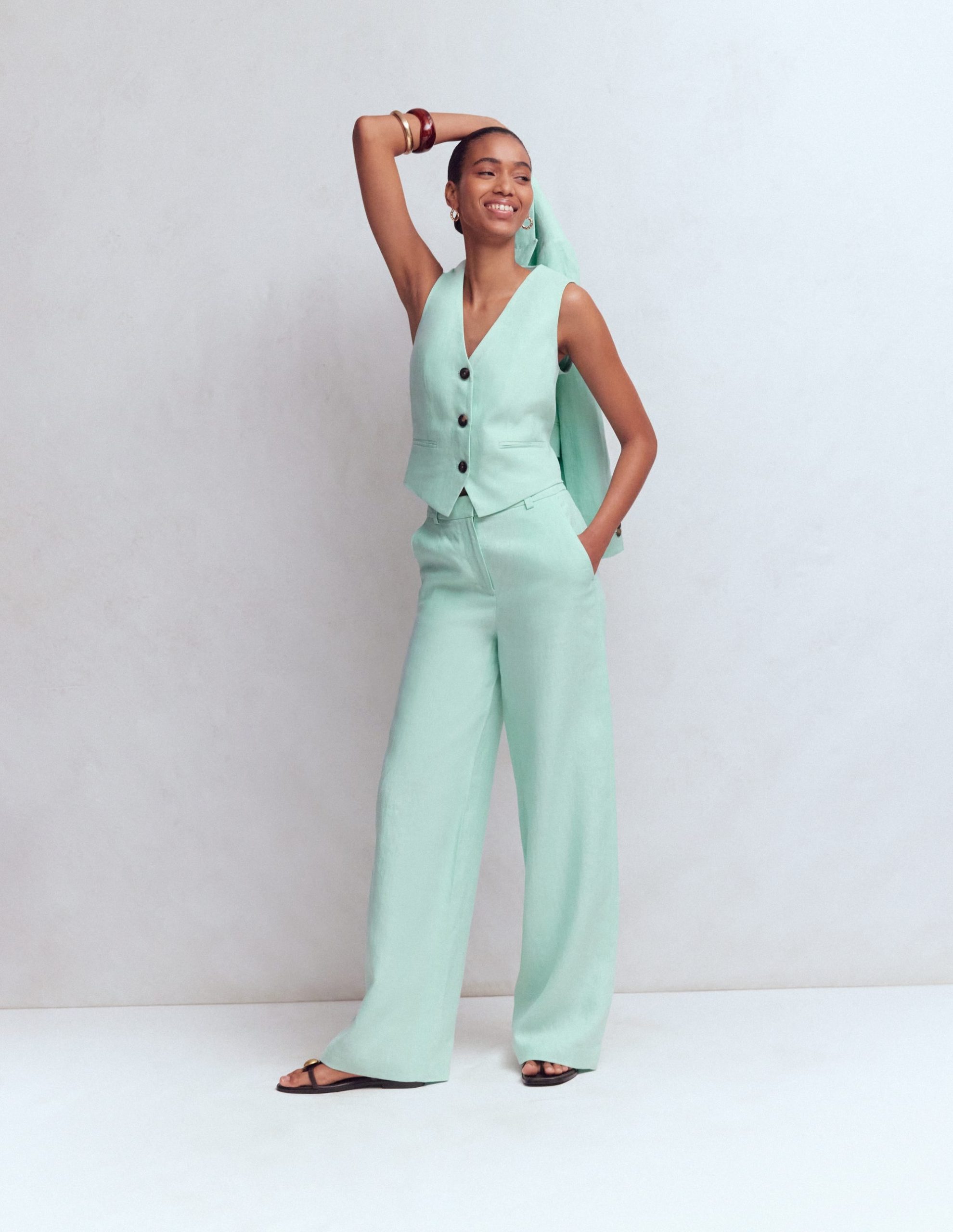 Our bestselling Belgravia trousers reimagined in 100% luxurious linen. This tailored wide-leg pair are lightweight and sit comfortably on the natural waist. The perfect style to carry you from work-to-weekend looks from now into warmer weather.