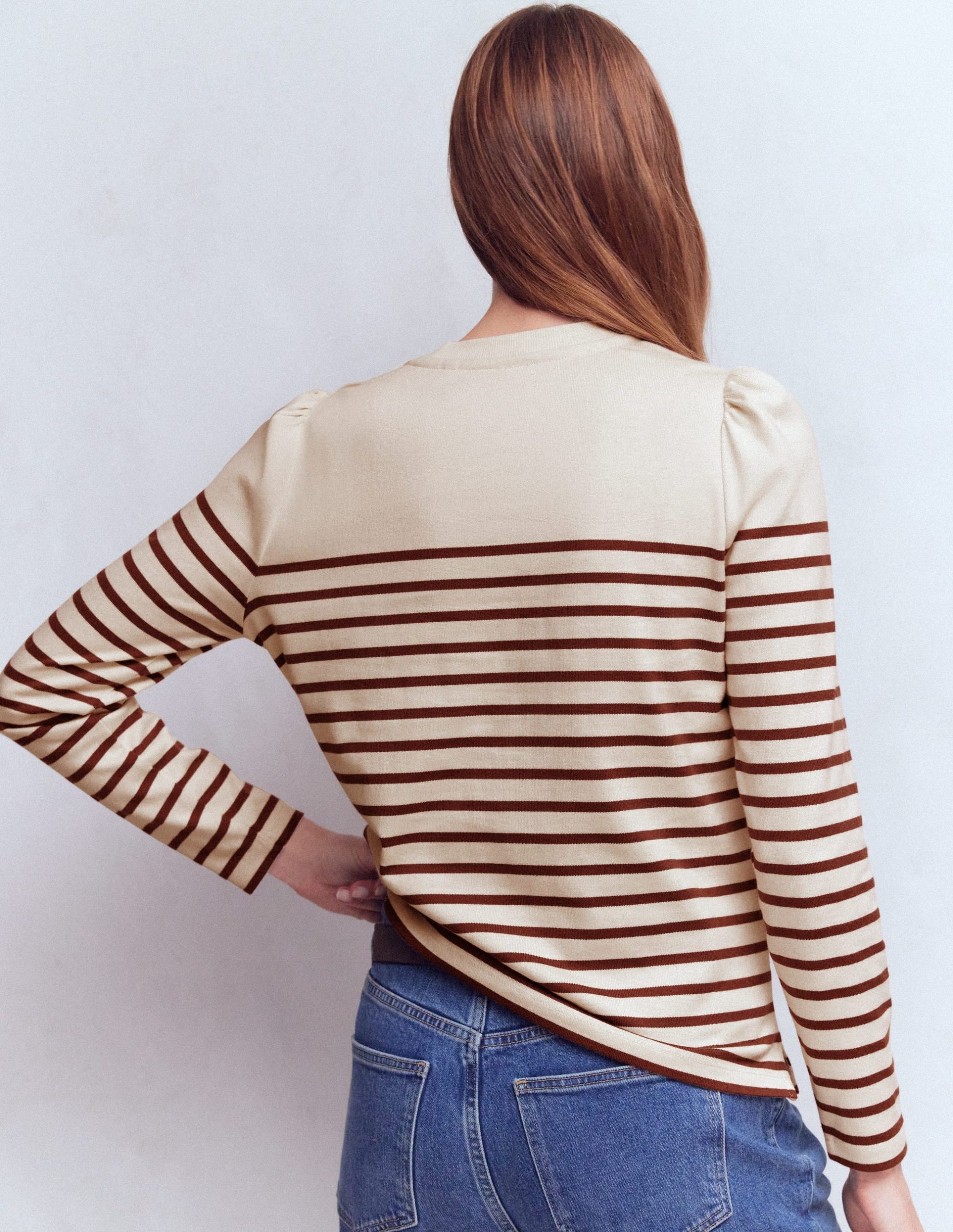 We love stripes and buttons, so we’ve added both to this nautical-inspired top. It’s crafted from 100% cotton with subtle puff sleeves. This style is perfect for weekend wanderings.