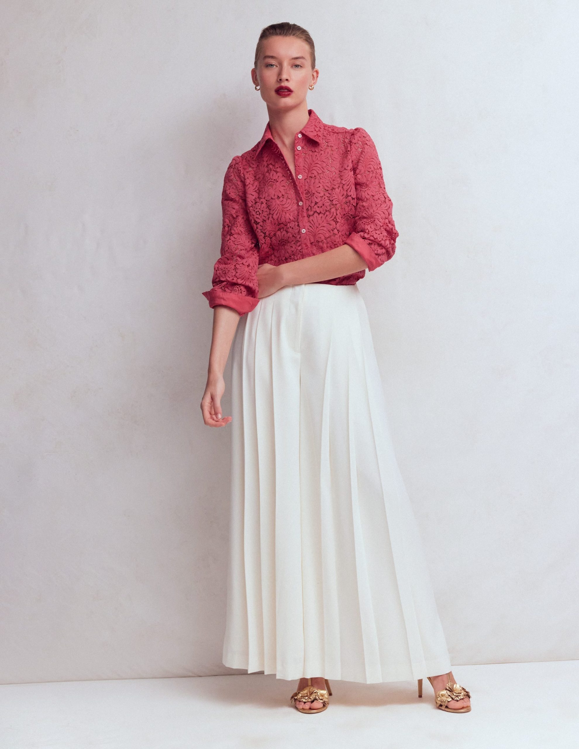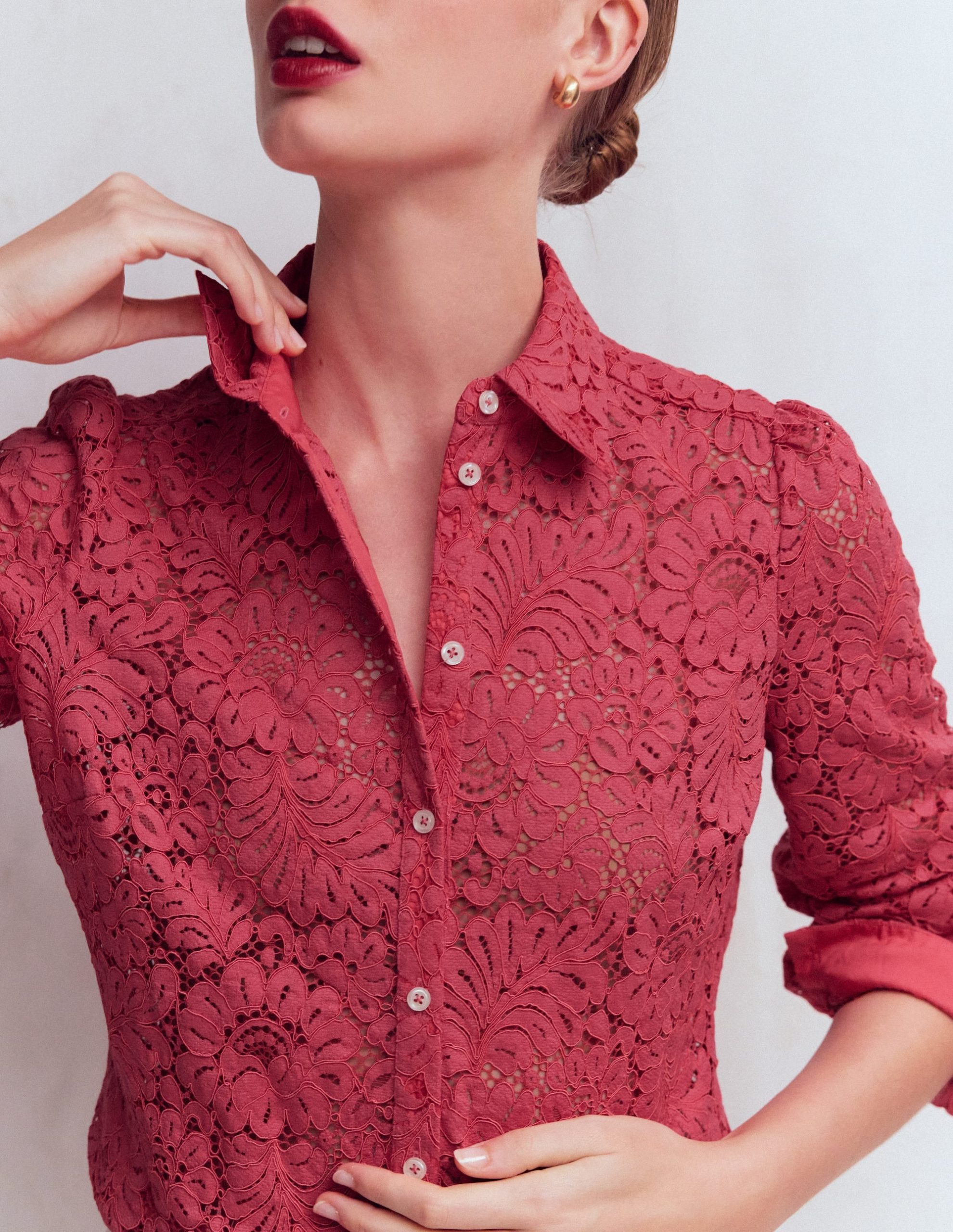 Cara Lace Shirt-Cherry Blush