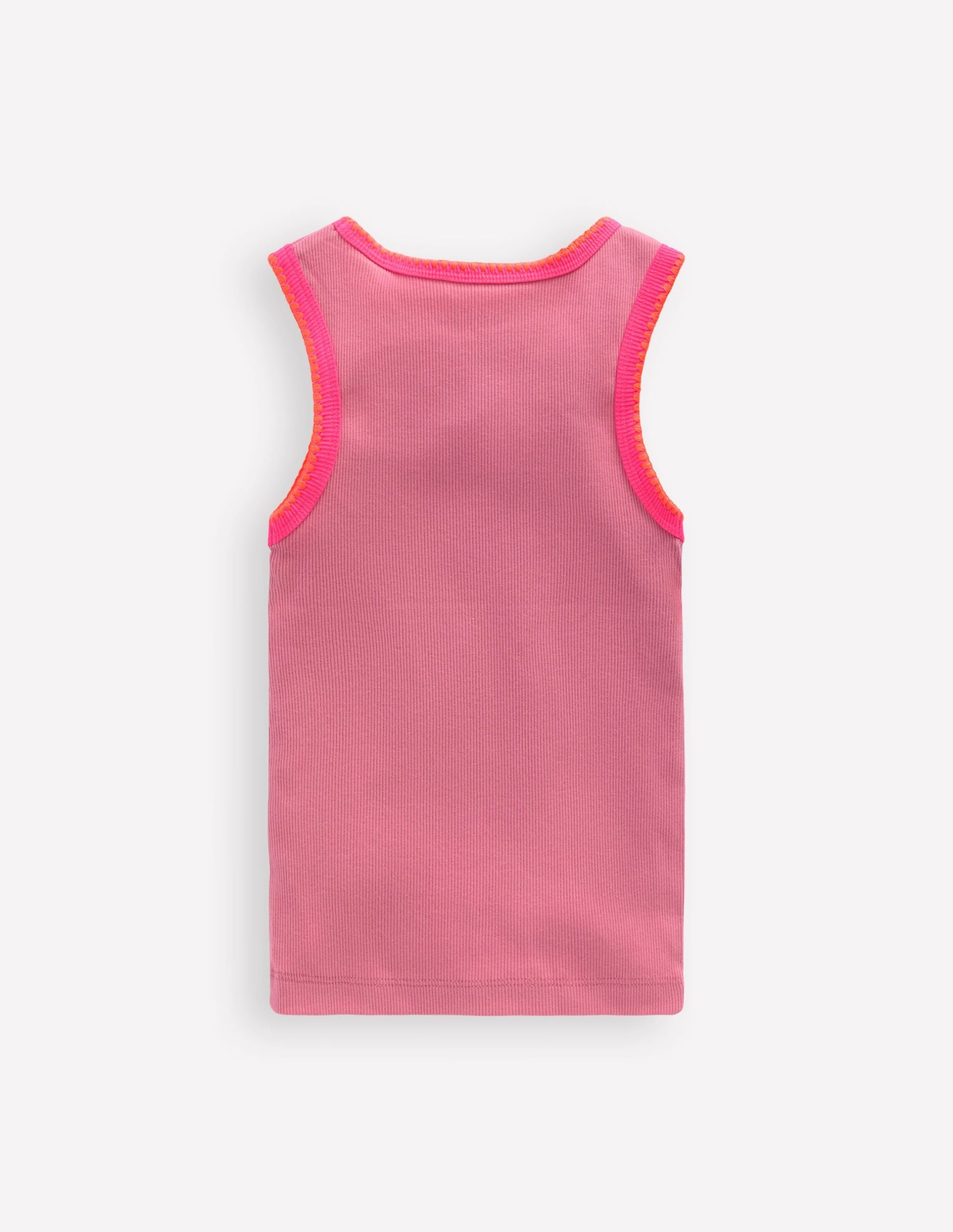 A ribbed cotton vest like you’ve never seen one before. It features a little stretch. snazzy crochet trim and three different colours. Minis will want to wear it as a spring layer now and for sports. fun days out and outdoor adventures all summer.
