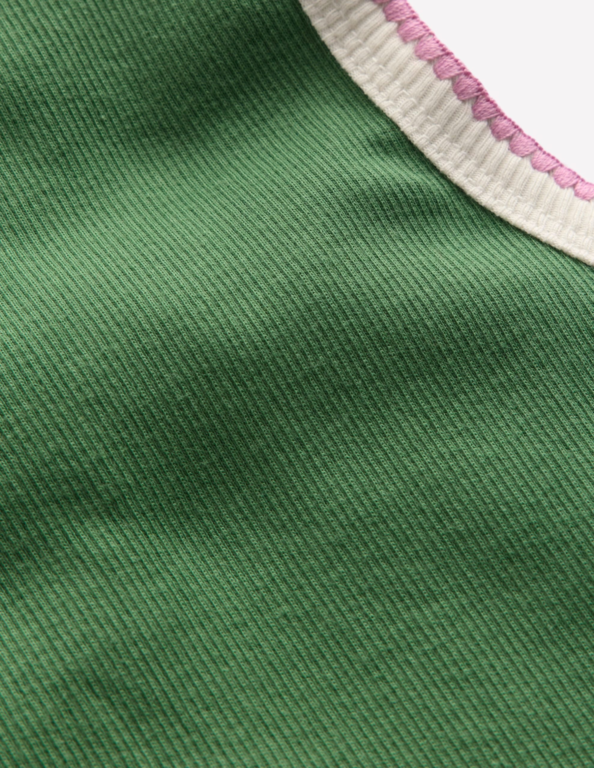 Crochet Trim Ribbed Vest-Willow Green