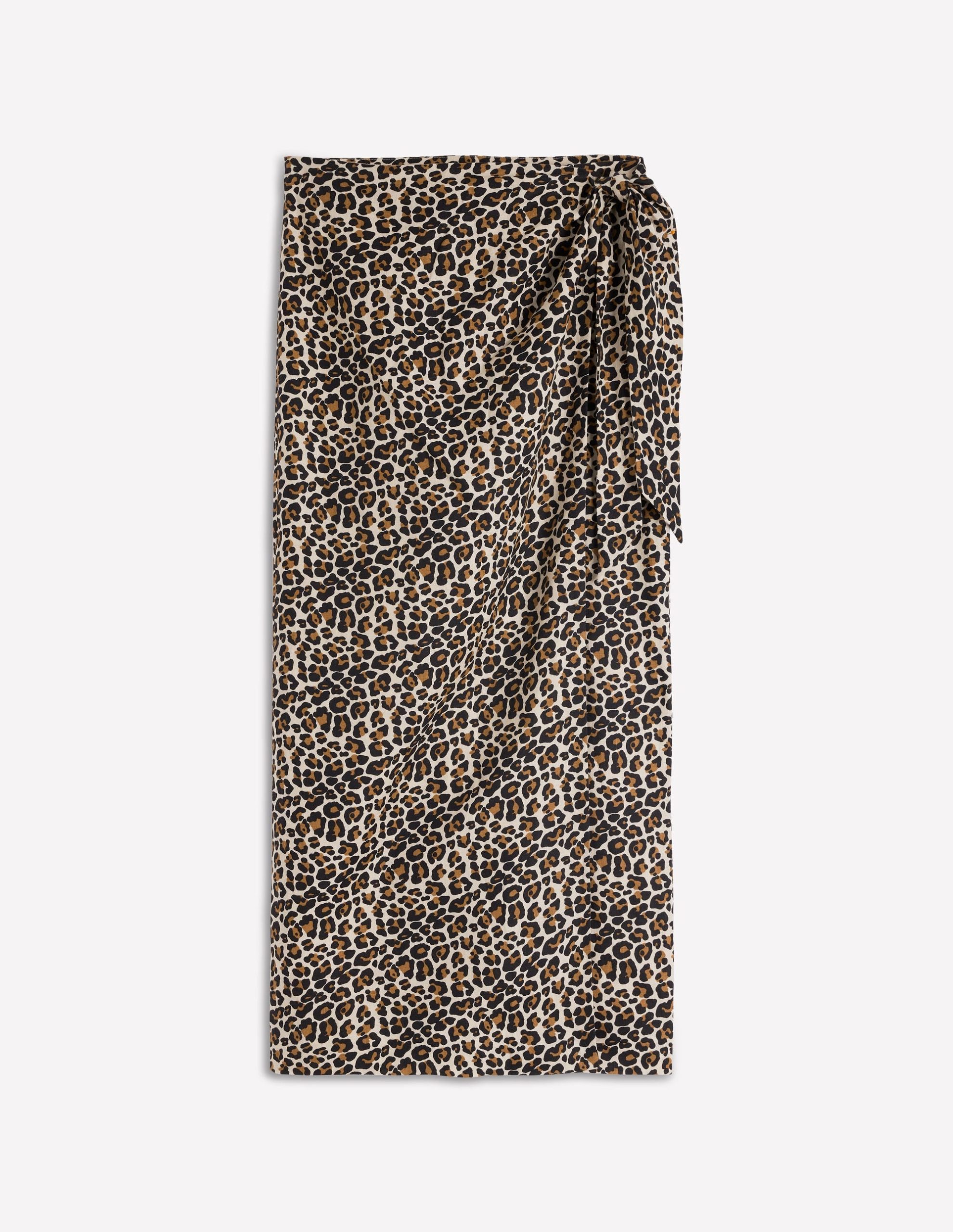 Dimitra Linen Column Skirt-Almond Milk. Cheetah Pop