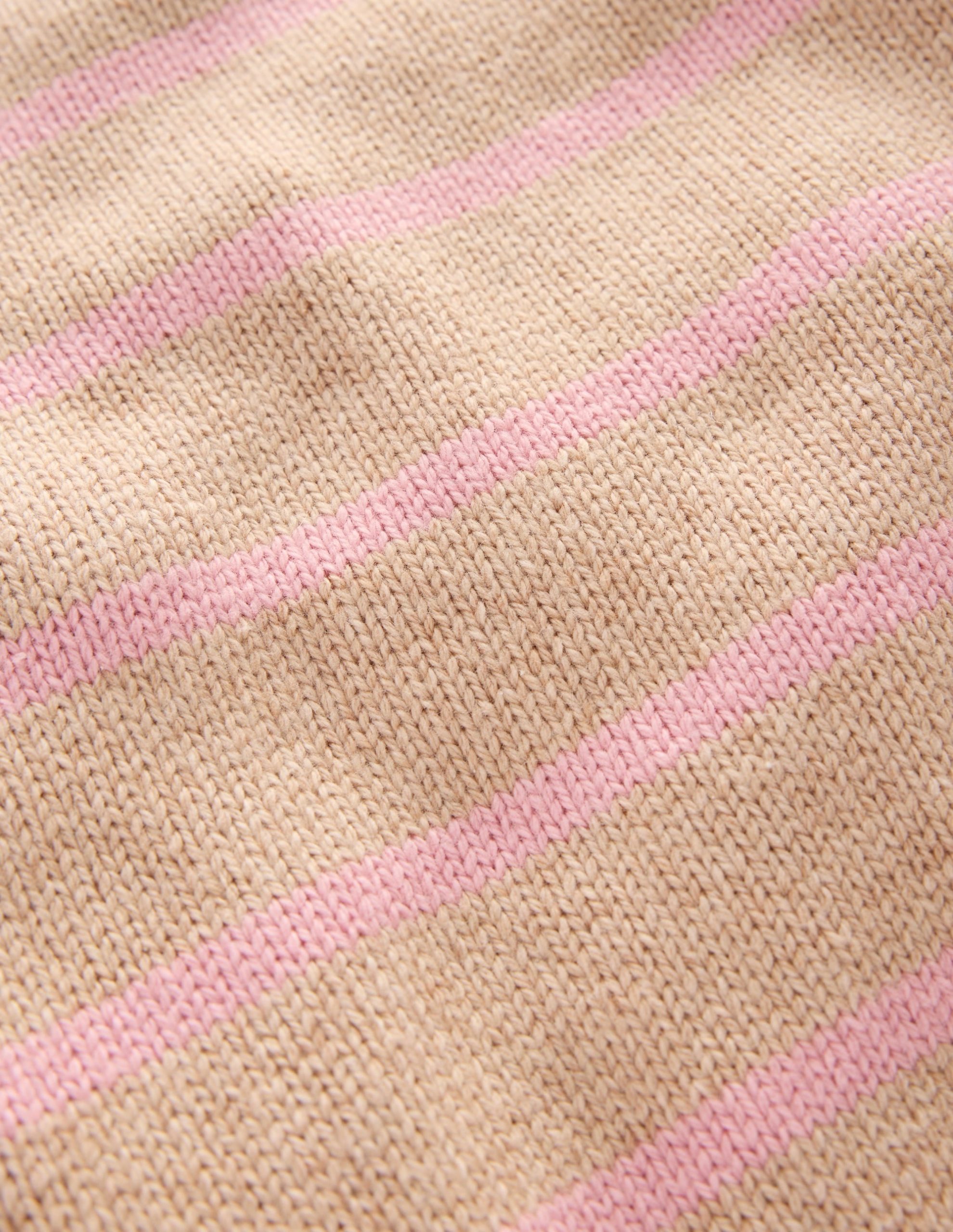 When the forecast says it’s time for hot chocolate, Minis need a snuggly jumper. This cotton blend knit has a touch of wool for extra warmth and a relaxed dropped-shoulder fit. Choose from two stripy designs with an adorable contrast trim (or get both).