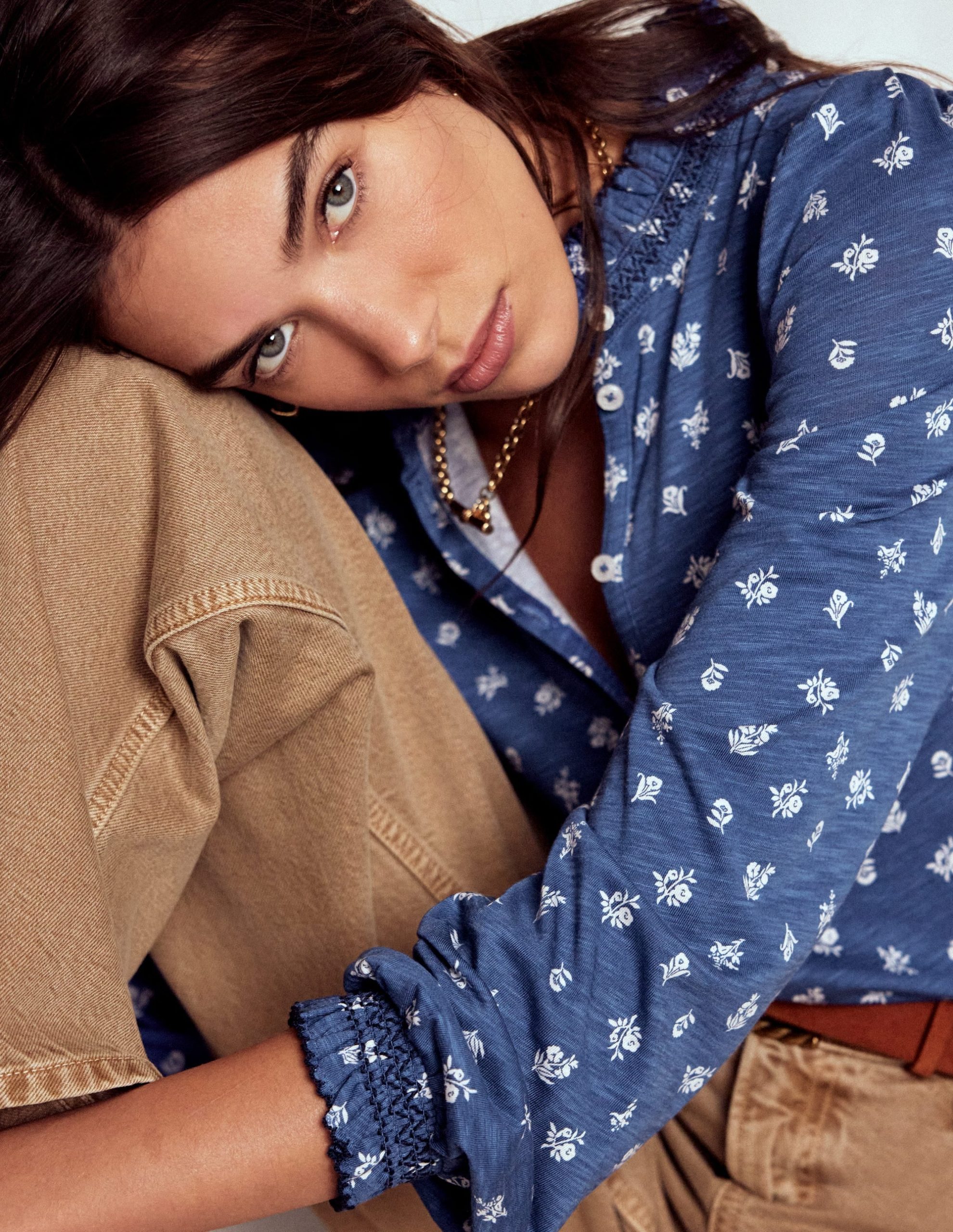 We pride ourselves on the fact our basics are never dull. This smocked cotton-blend shirt is incredibly easy to wear, goes with everything and the ruffled collar and cuffs are the chef’s kiss of a finishing touch.