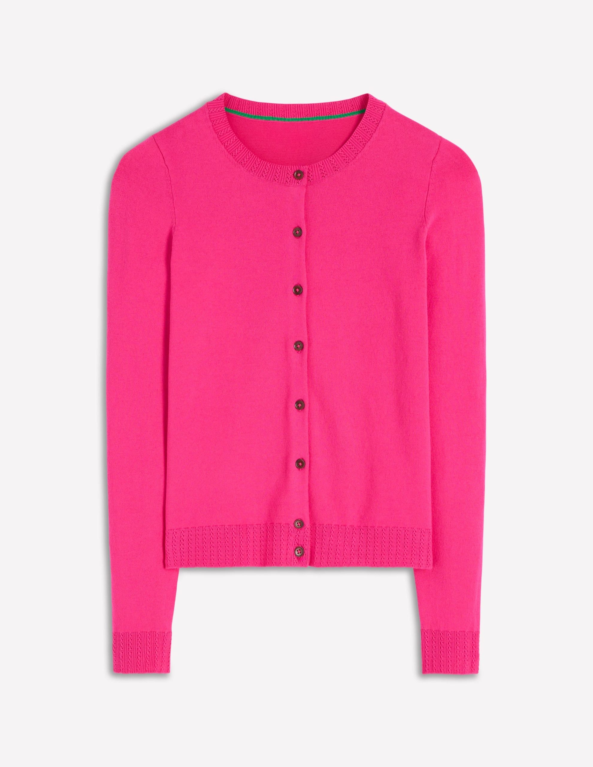 Spun from soft cotton and with intricate trim detail at the hemline, neckline and cuffs, our Emilia cardigan is a layer that offers a polished finish. Why not choose one in every colour?