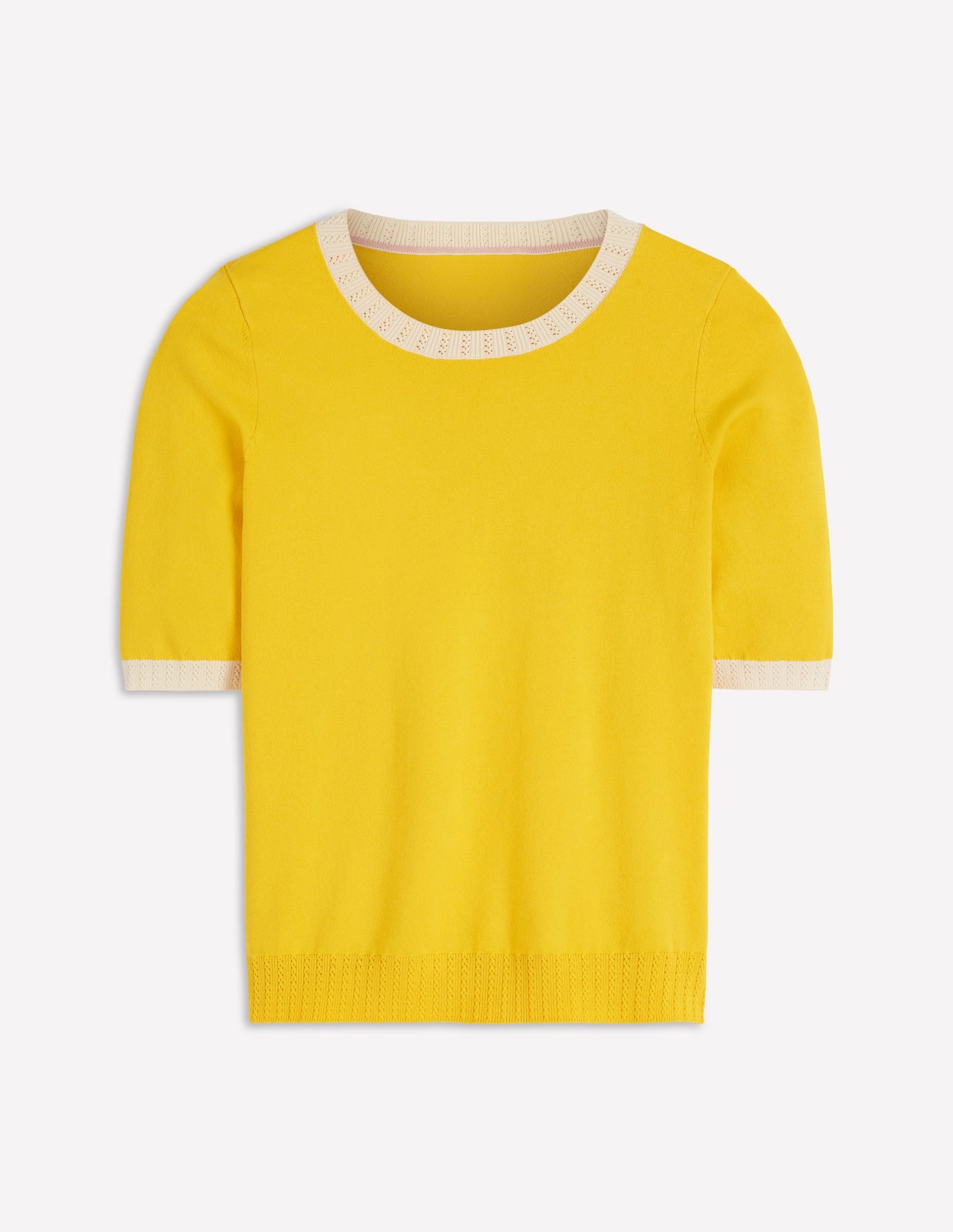 Finely woven from soft cotton, our Emilia crew-neck T-shirt has the feel of a knit in the style of a tee. Pair with wide-leg trousers or jeans for a cosy combo this season.