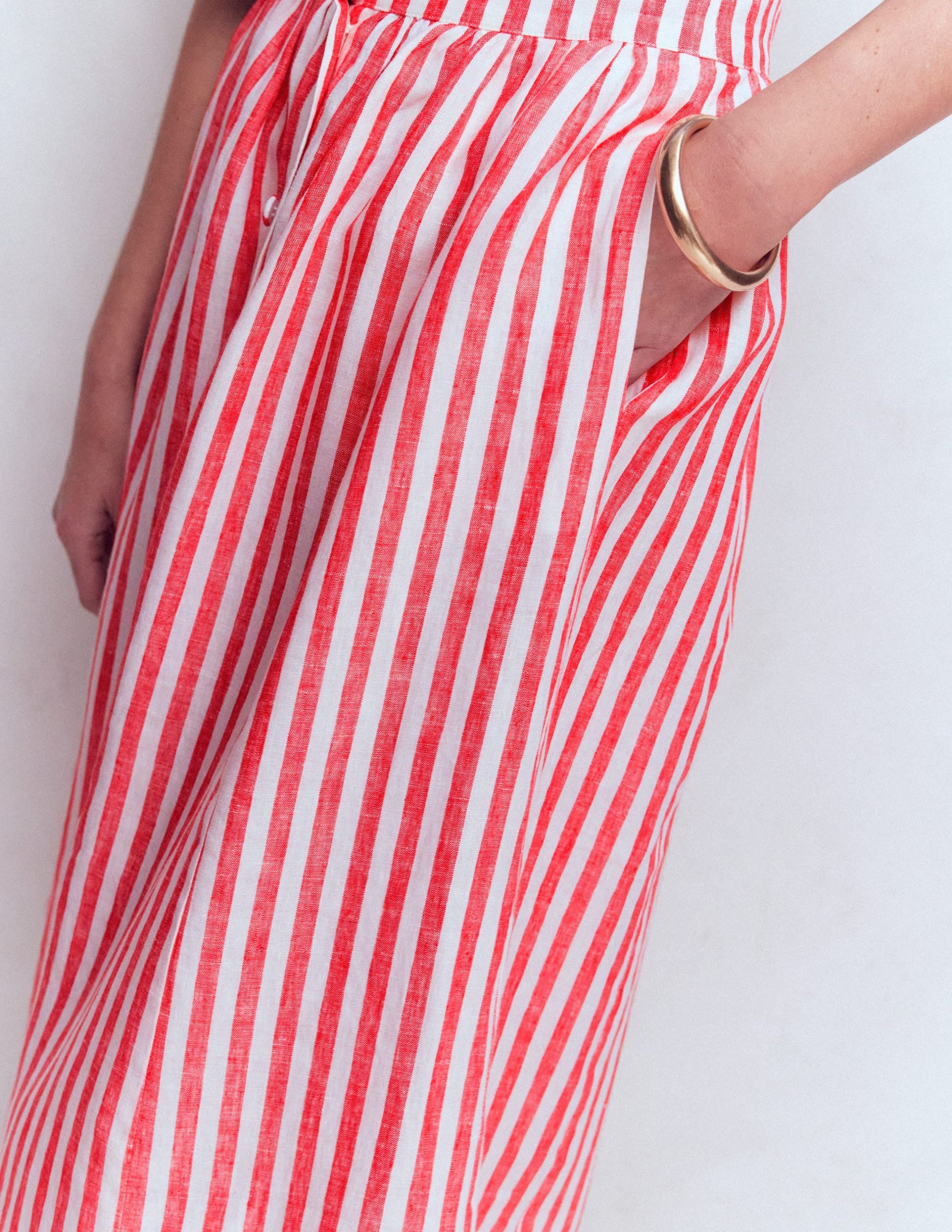 Emma Linen Maxi Skirt-Poppy Red and Ivory Stripe