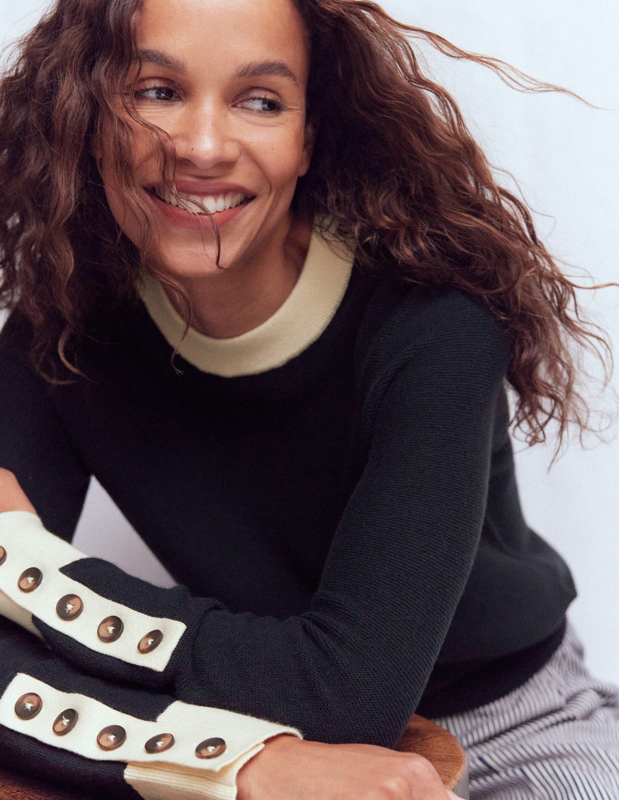 There’s nothing like clever colourblocking to elevate your knitwear. This must-have knit with contrast neckline and cuffs is crafted from cotton with a touch of cashmere for extra softness. Pair it with jeans as an effortless weekend layer.
