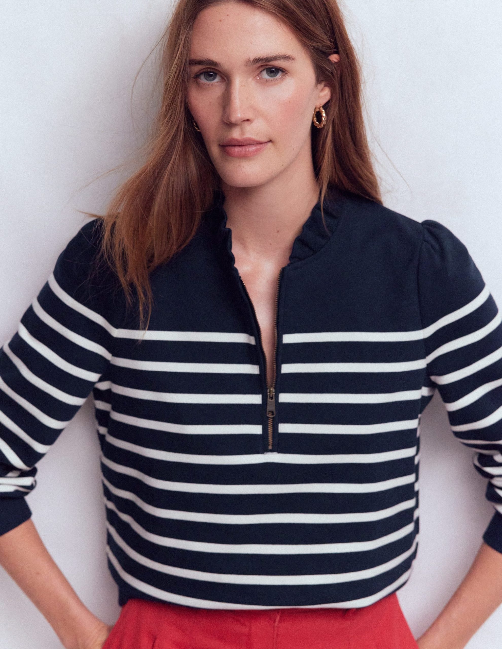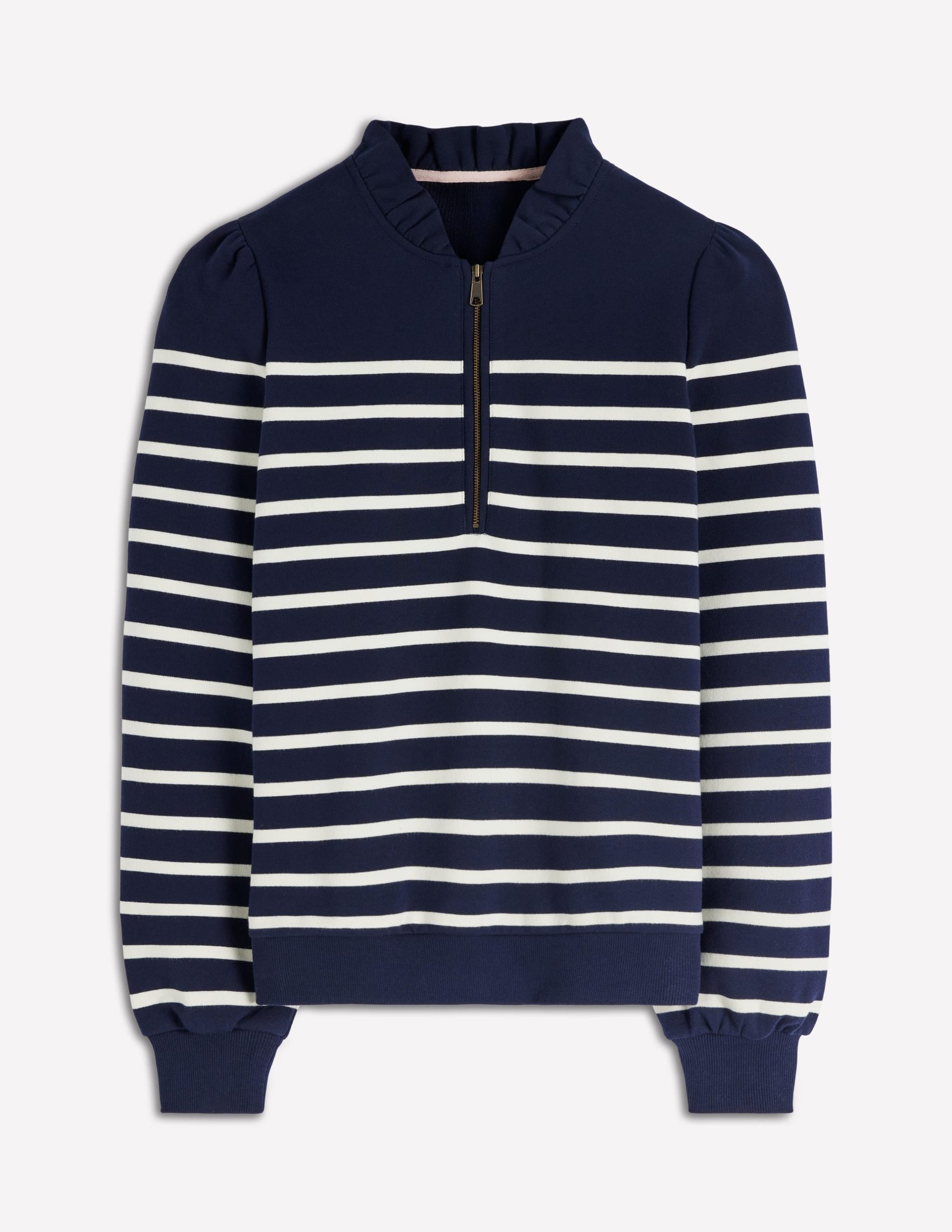 We don’t make boring sweatshirts. Case in point: this one has a ruffled neckline, subtle puff sleeves and a front zip to make it all the more joy-inducing. Crafted from pure cotton it’s lightweight and will elevate your favourite pair of jeans.