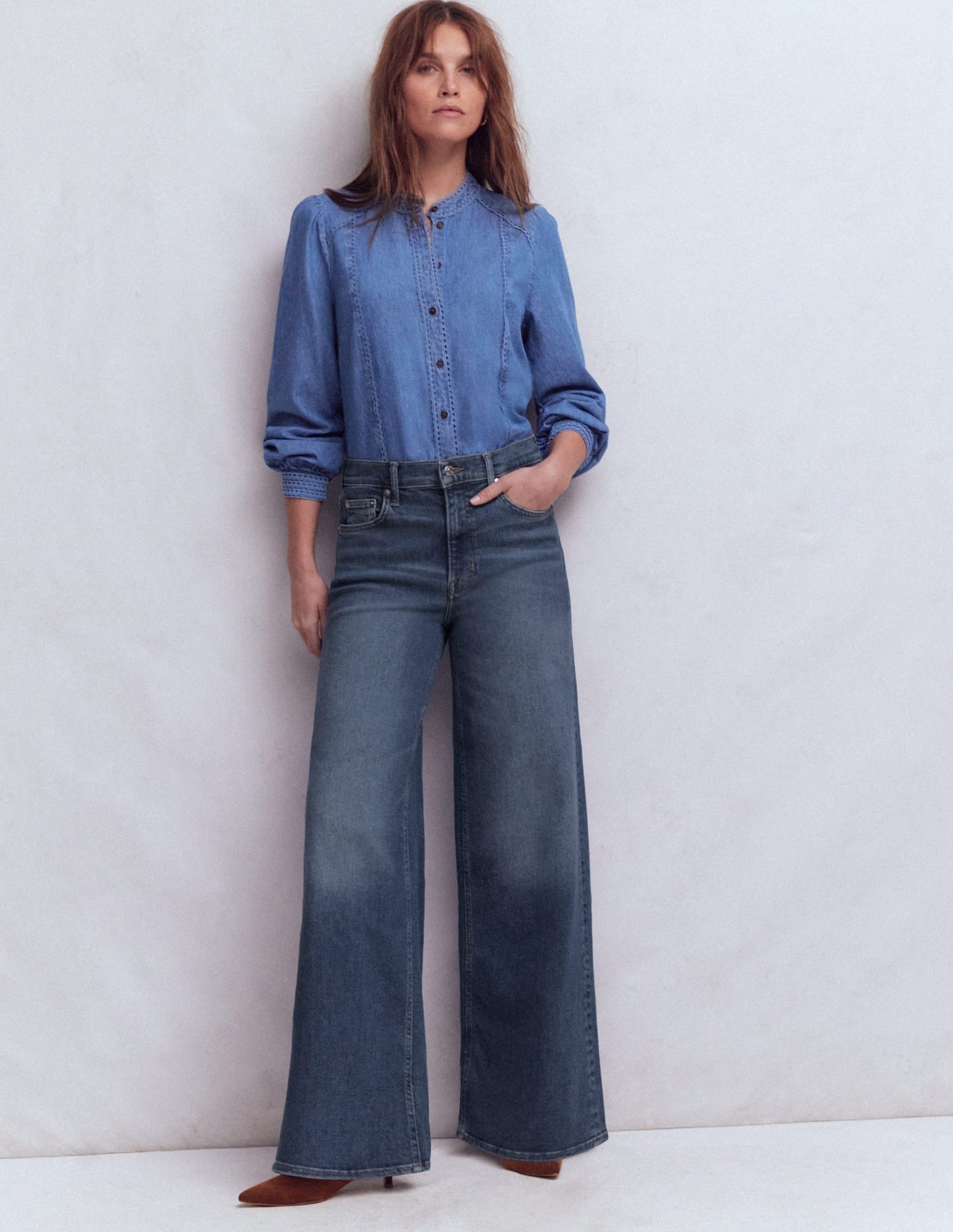 Woven with just the right amount of stretch, these high-rise, wide-leg jeans have a relaxed feel – the added ease means a little more room to move. For a more fitted look, we recommend sizing down.