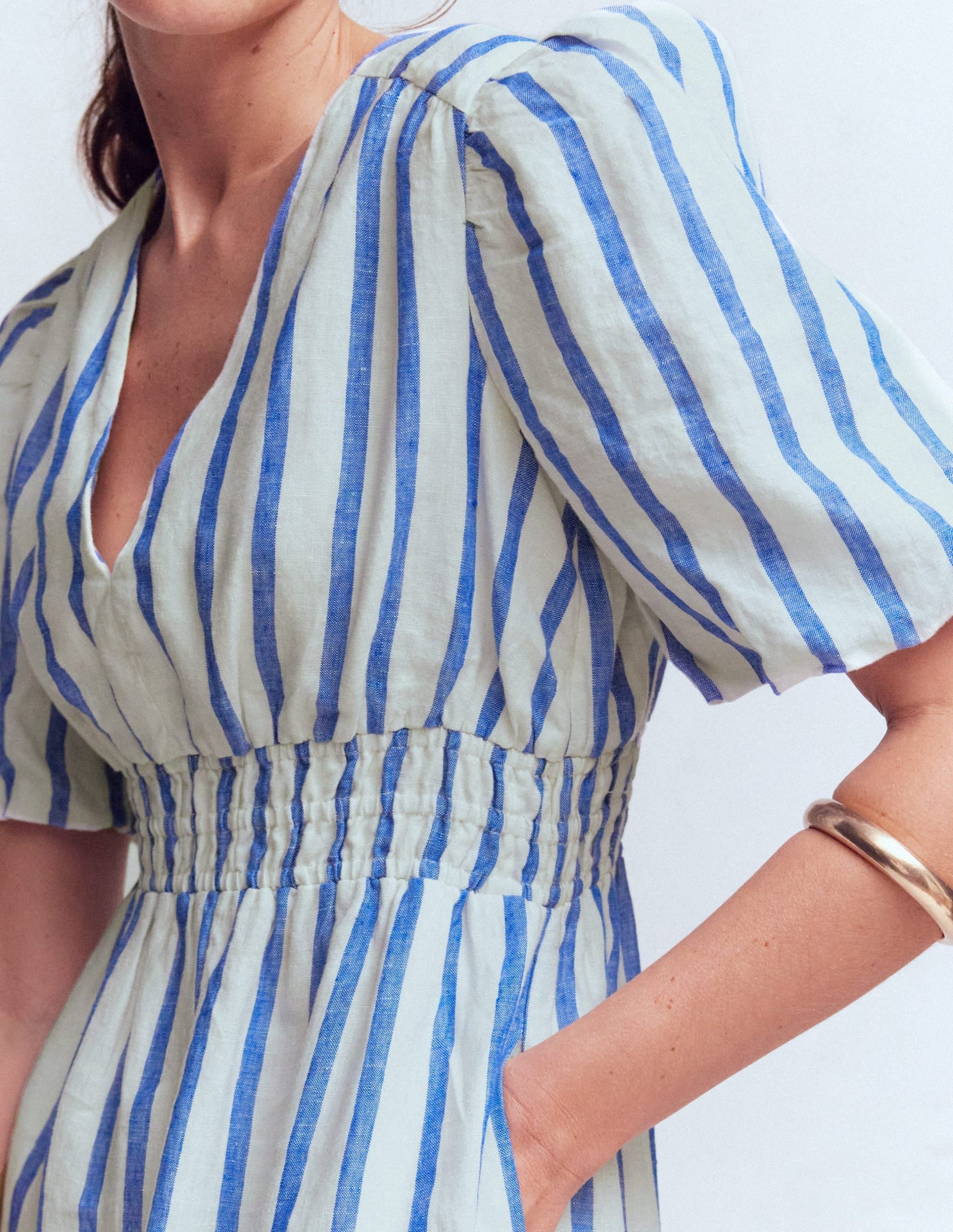Irene Linen Midi Dress-Blue Stripe