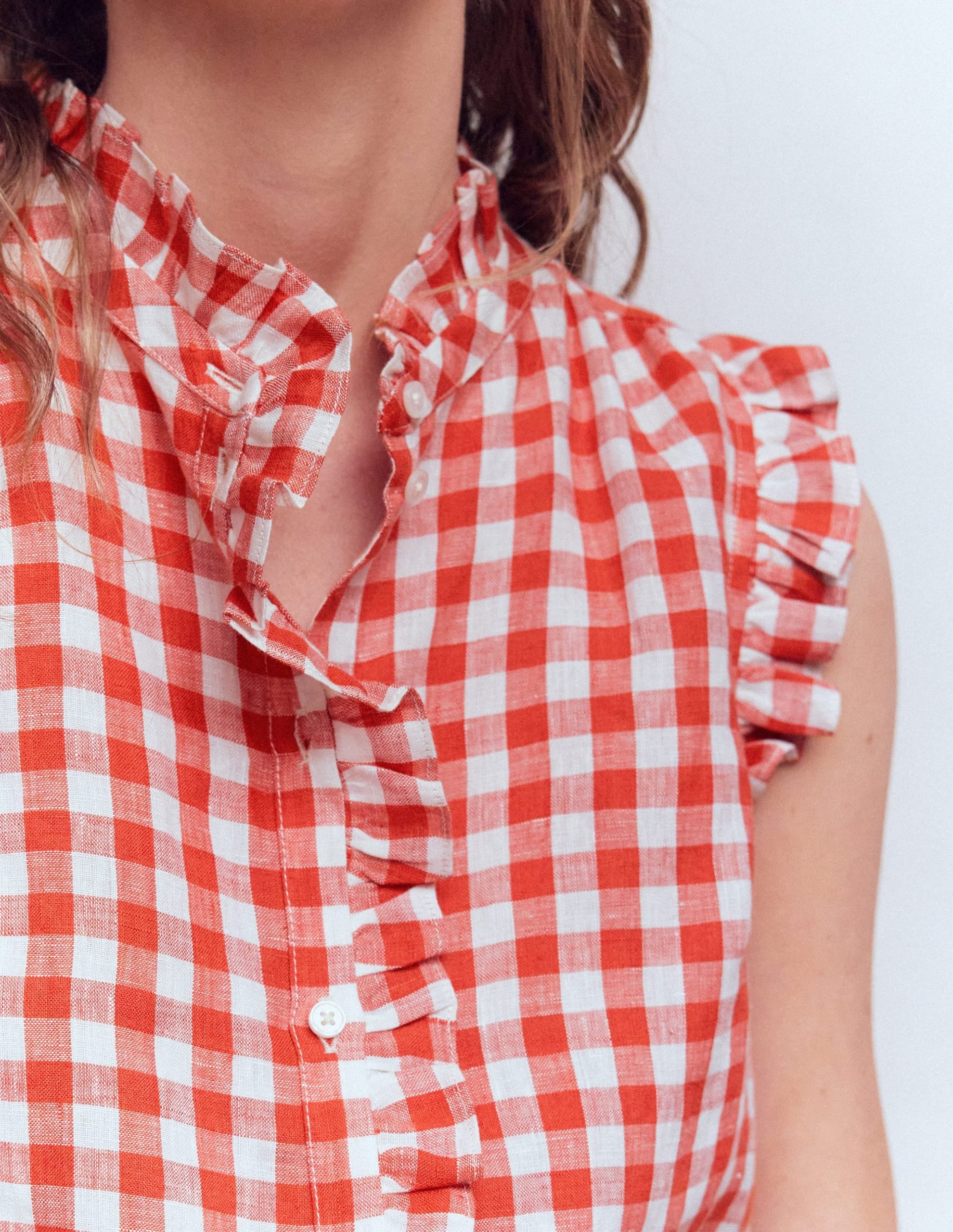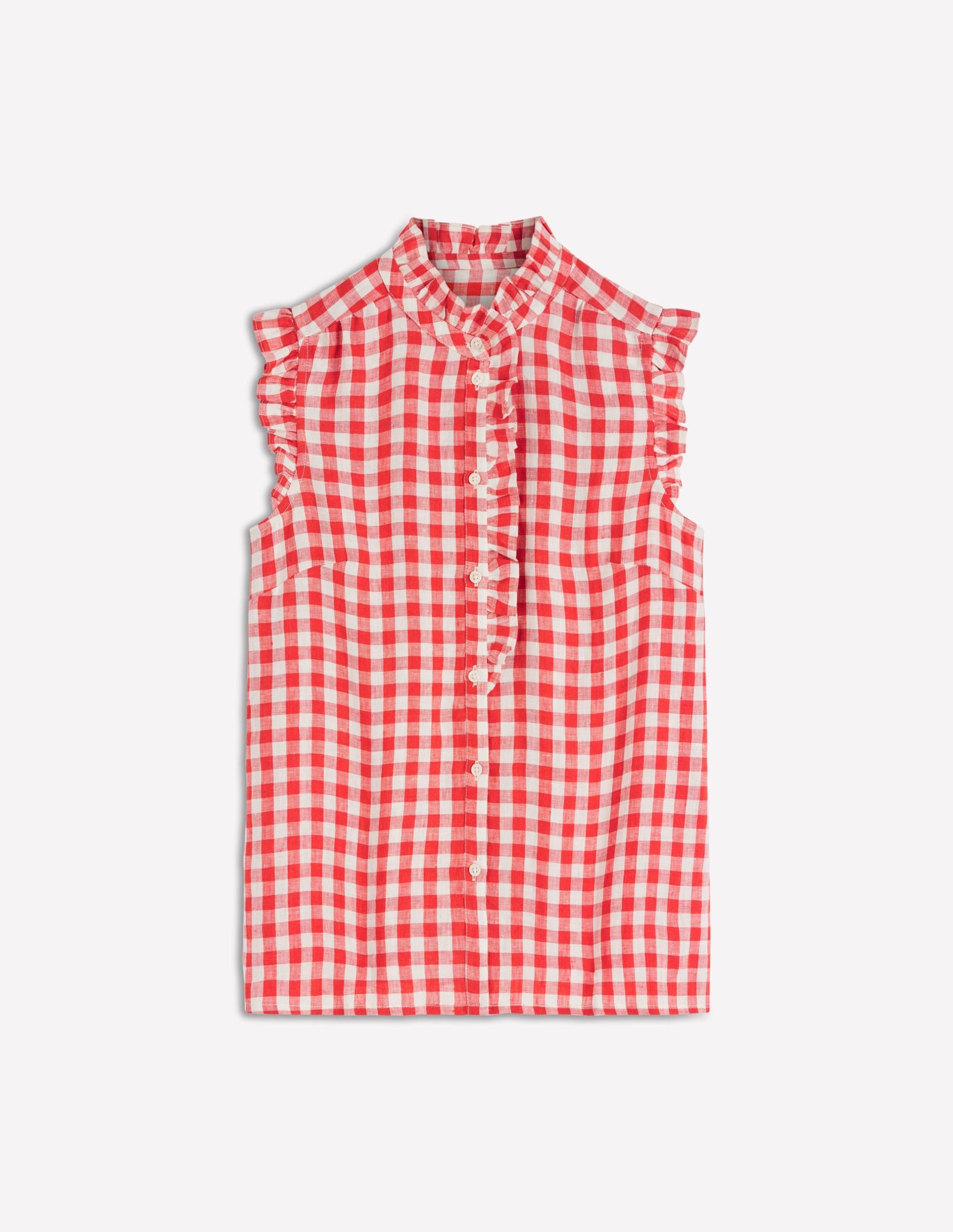 Isabel Sleeveless Linen Top-Burnt Red Gingham