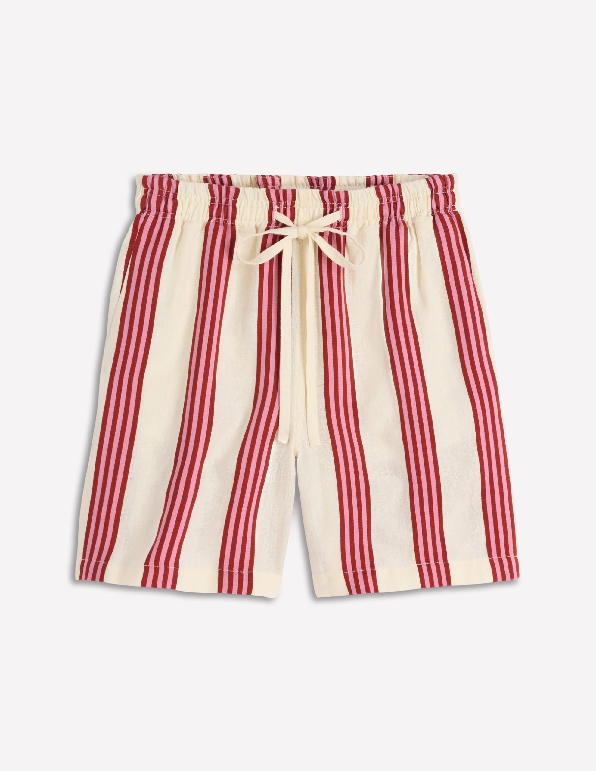 Islington Linen Shorts-Ivory. Brown & Pink Stripe