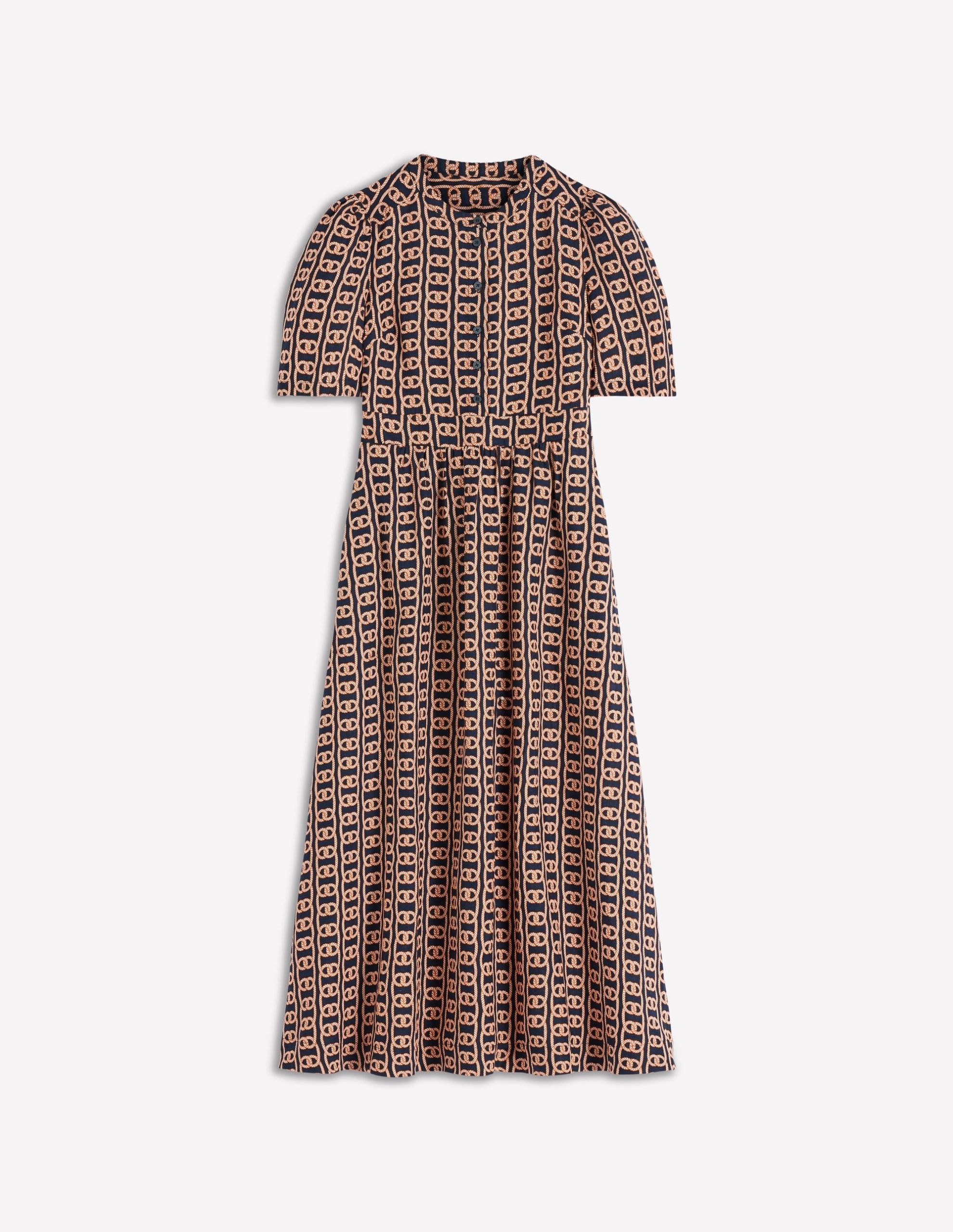 Ivy Linen Midi Dress-French Navy. Rope Trellis