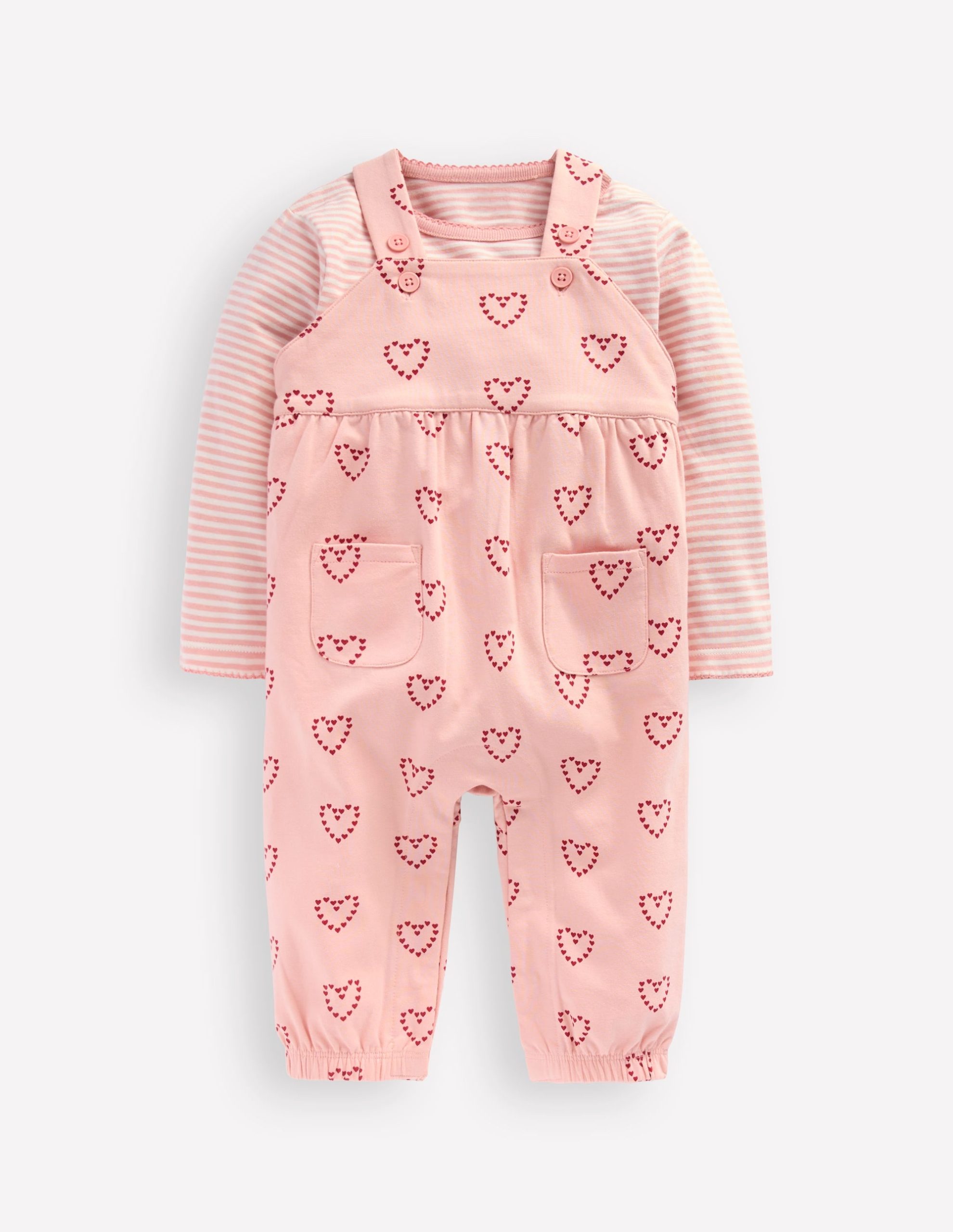 A ready-made outfit in one fell swoop? Yes please. Soft jersey printed dungarees with a coordinating soft cotton top – it’s really that simple. We added stripes and sweet prints that’ll make your heart flutter.