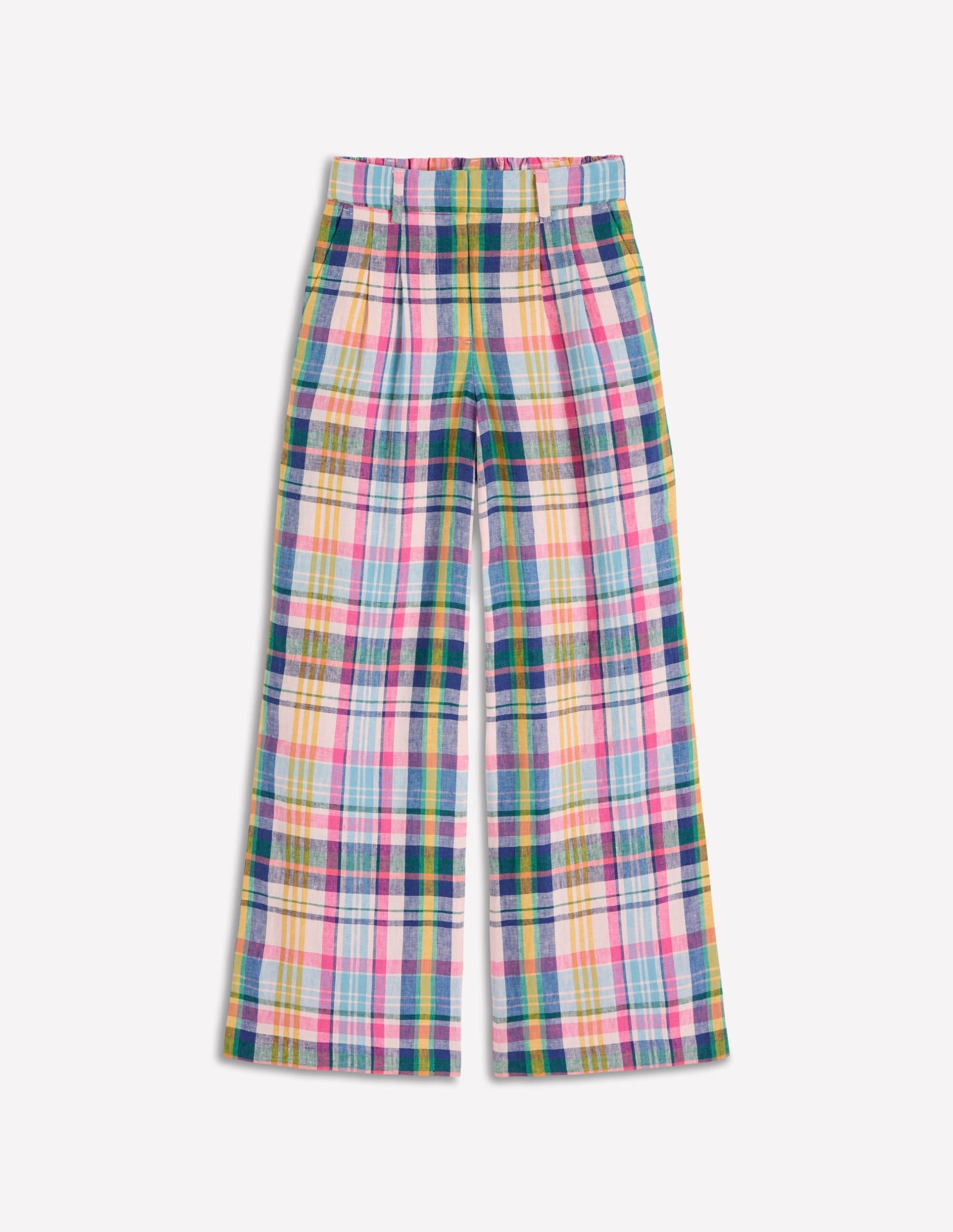 Kensington Linen Pants-Blue. Pink and Green Madras
