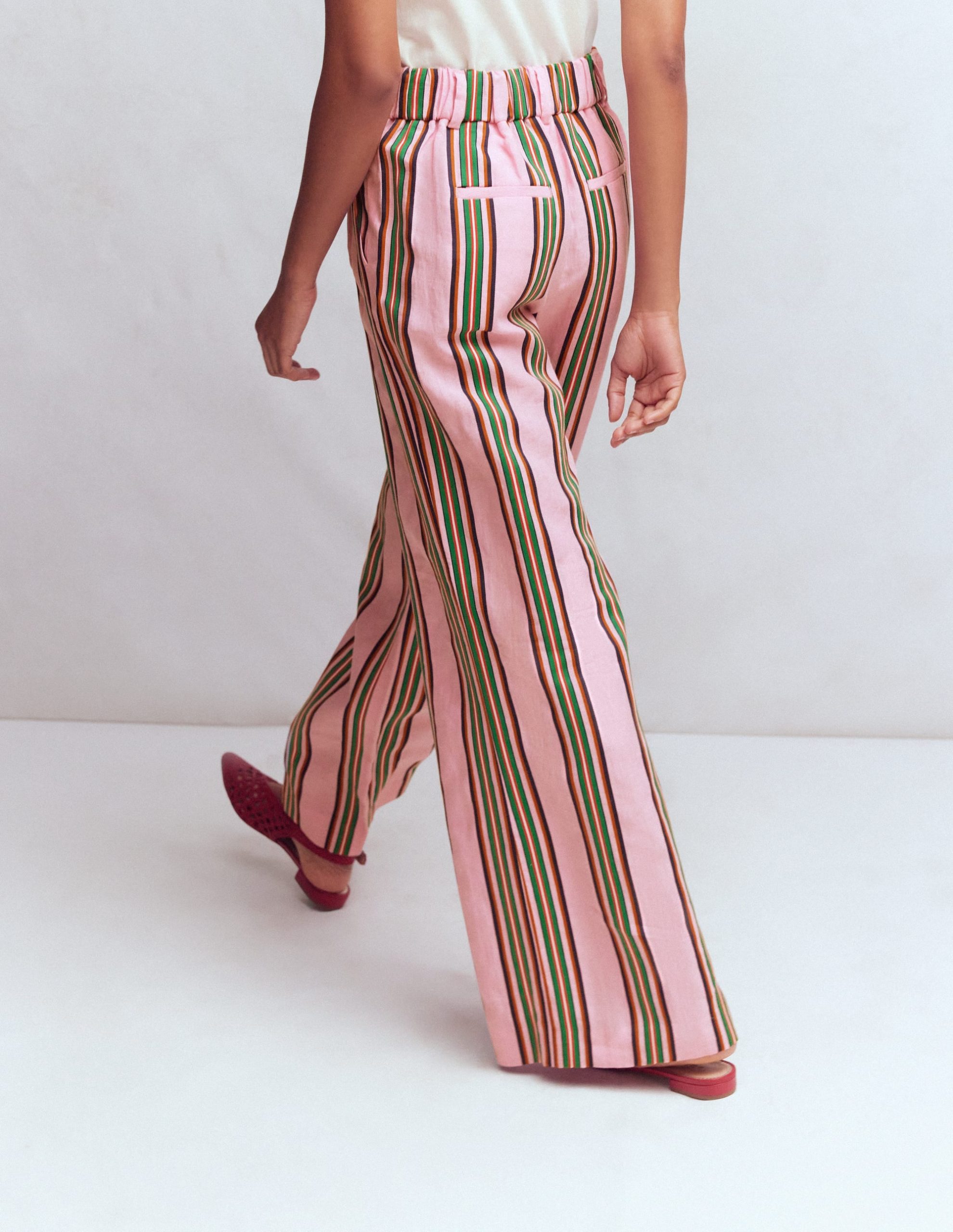 Kensington Linen Pants-Pink and Green Stripe