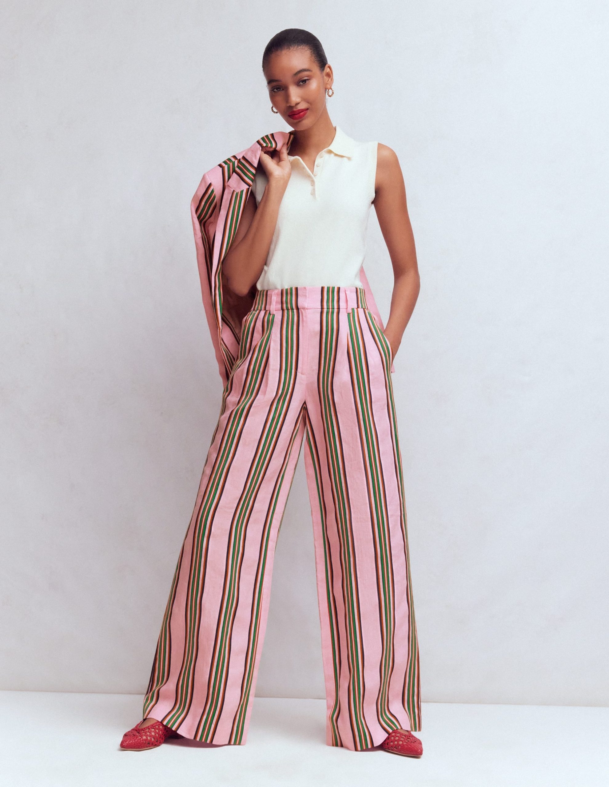 Same tailored wide-leg shape. new crisp linen fabric. Our Kensington trousers will see you through from now until summer and beyond. For a co-ord wedding guest moment. wear with the matching blazer.