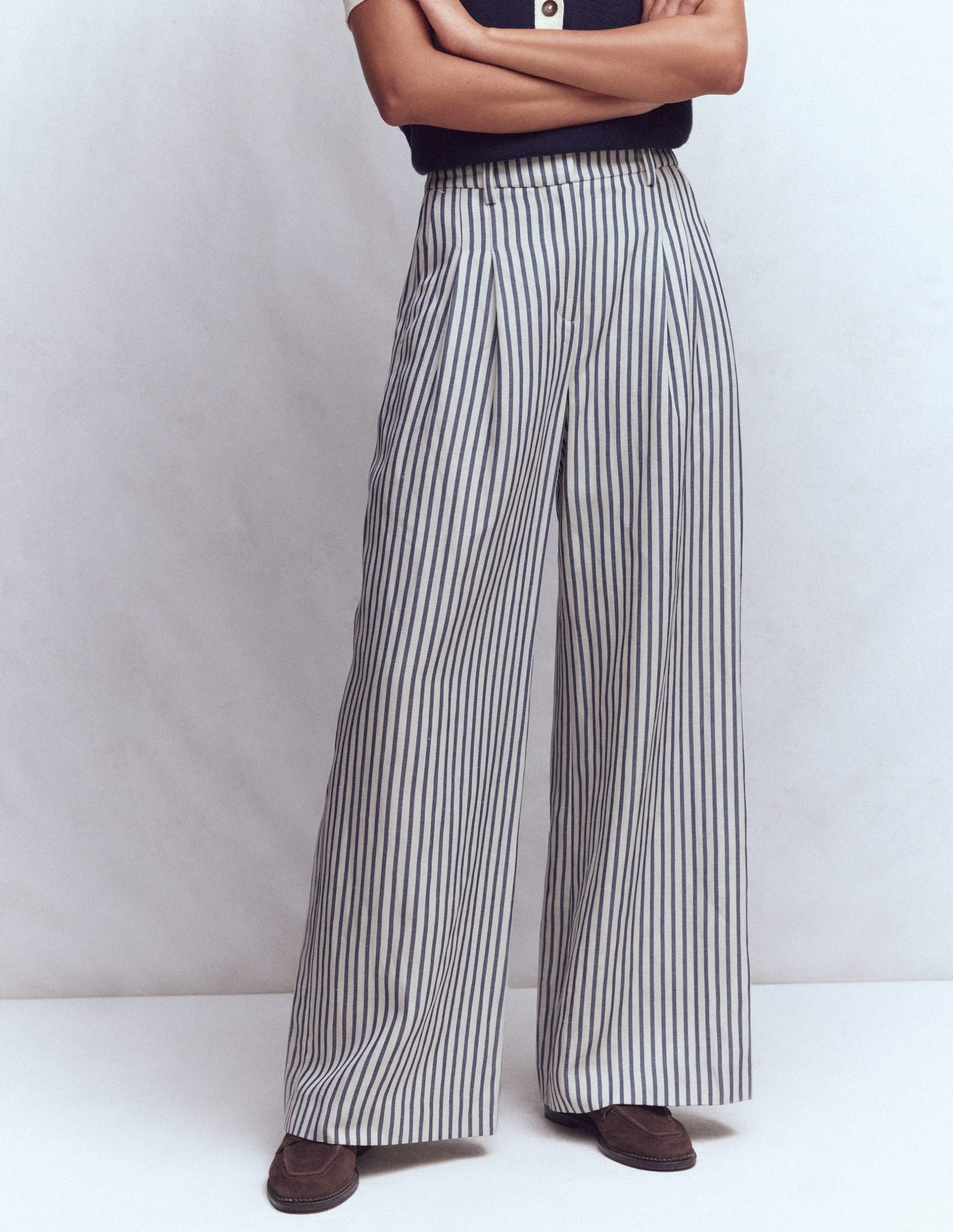 Kensington Wide Leg Pants-Blue and Ivory Stripe