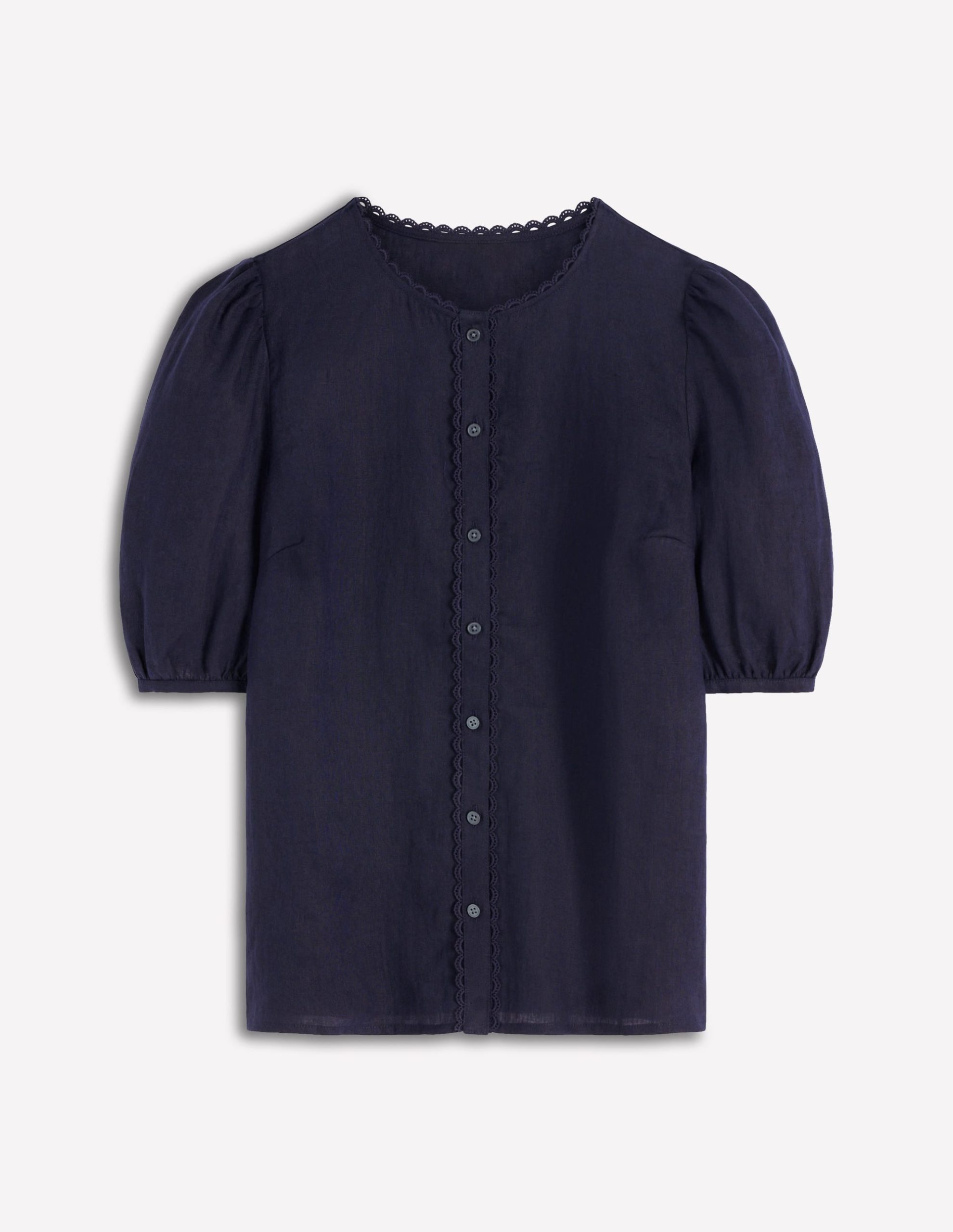 This pure linen top has us dreaming of warmer days. The boho shape, short blouson sleeves and embroidered trim give it some special Boden finishing touches. Wear with jeans and a cardi now, shorts and sandals later.