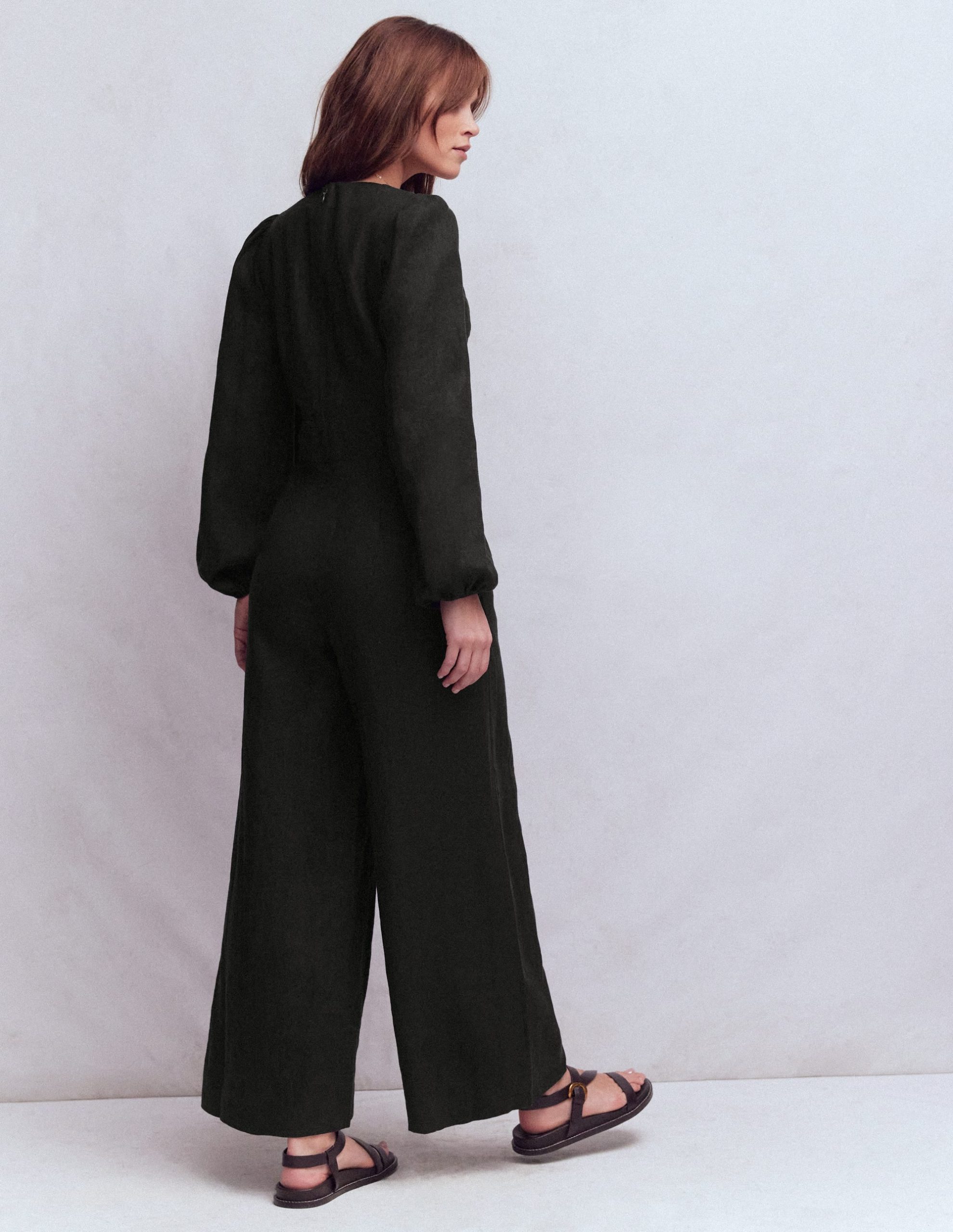 Crafted from breathable linen. this wide-leg jumpsuit will see you through the months ahead across parties. weddings and dinners out on holiday. Shirring on the back and darts ensure a perfect fit on the top and the billowy sleeves add balance.