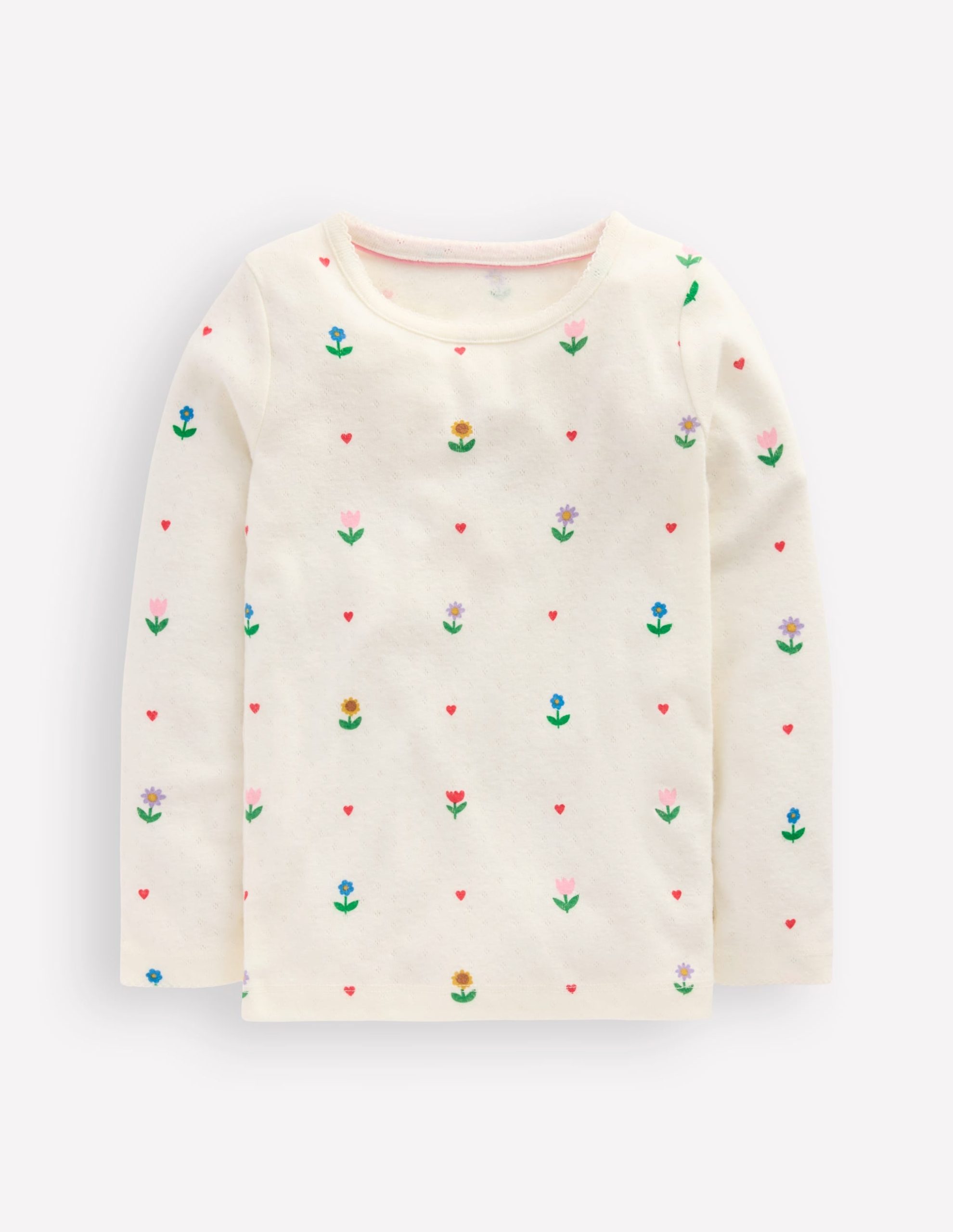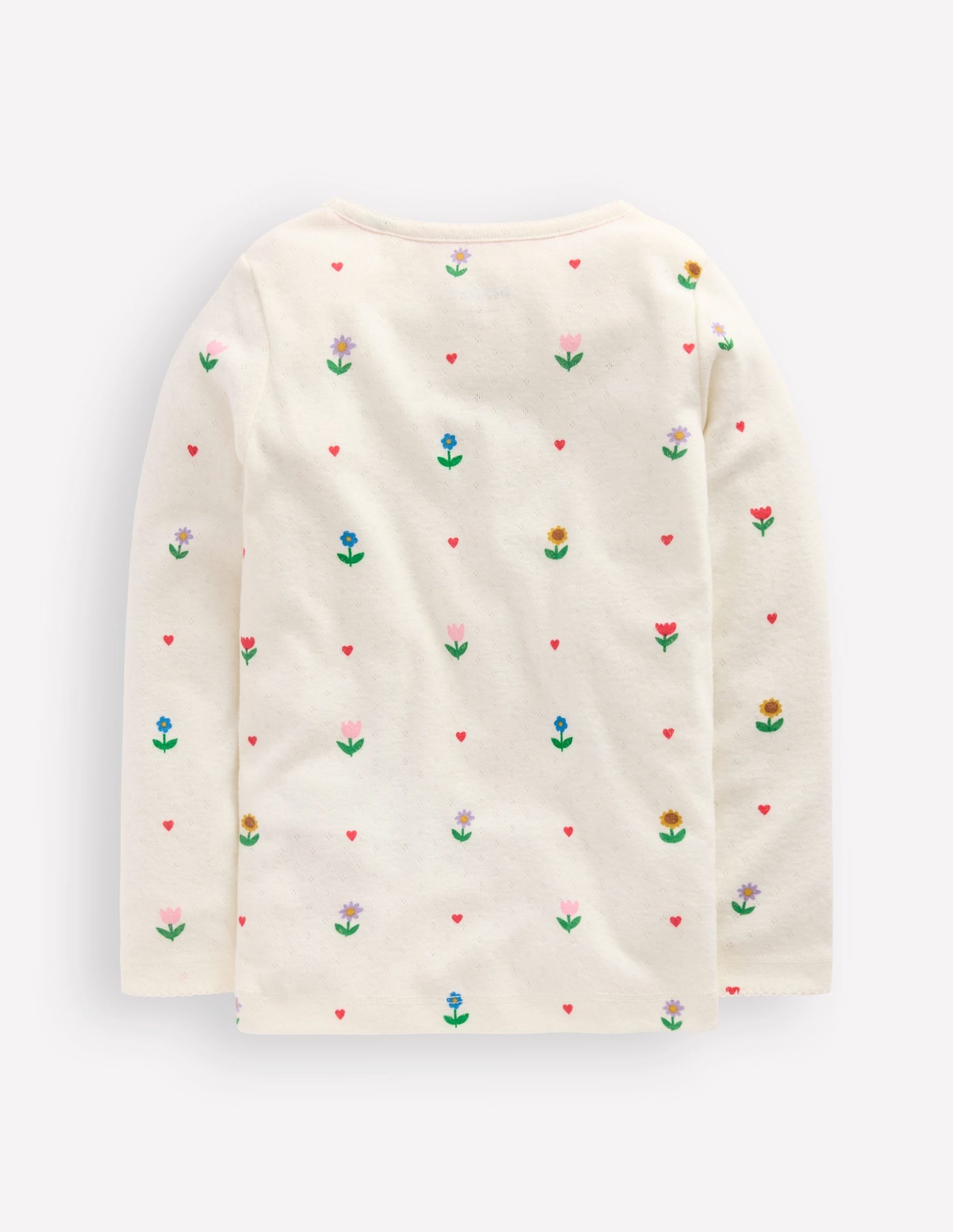 Long Sleeve Pointelle Top-Ivory Sunflower Garden