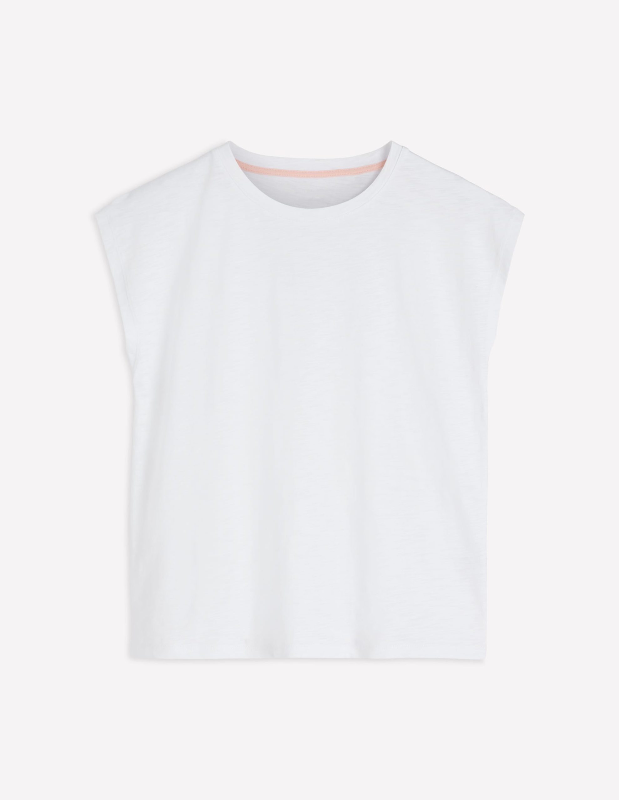 Cut in a classic boxy shape with a round neck and dropped shoulders. this slubbed-cotton tee is soft to the touch and comfortable to wear. Make it your everyday capsule go-to.