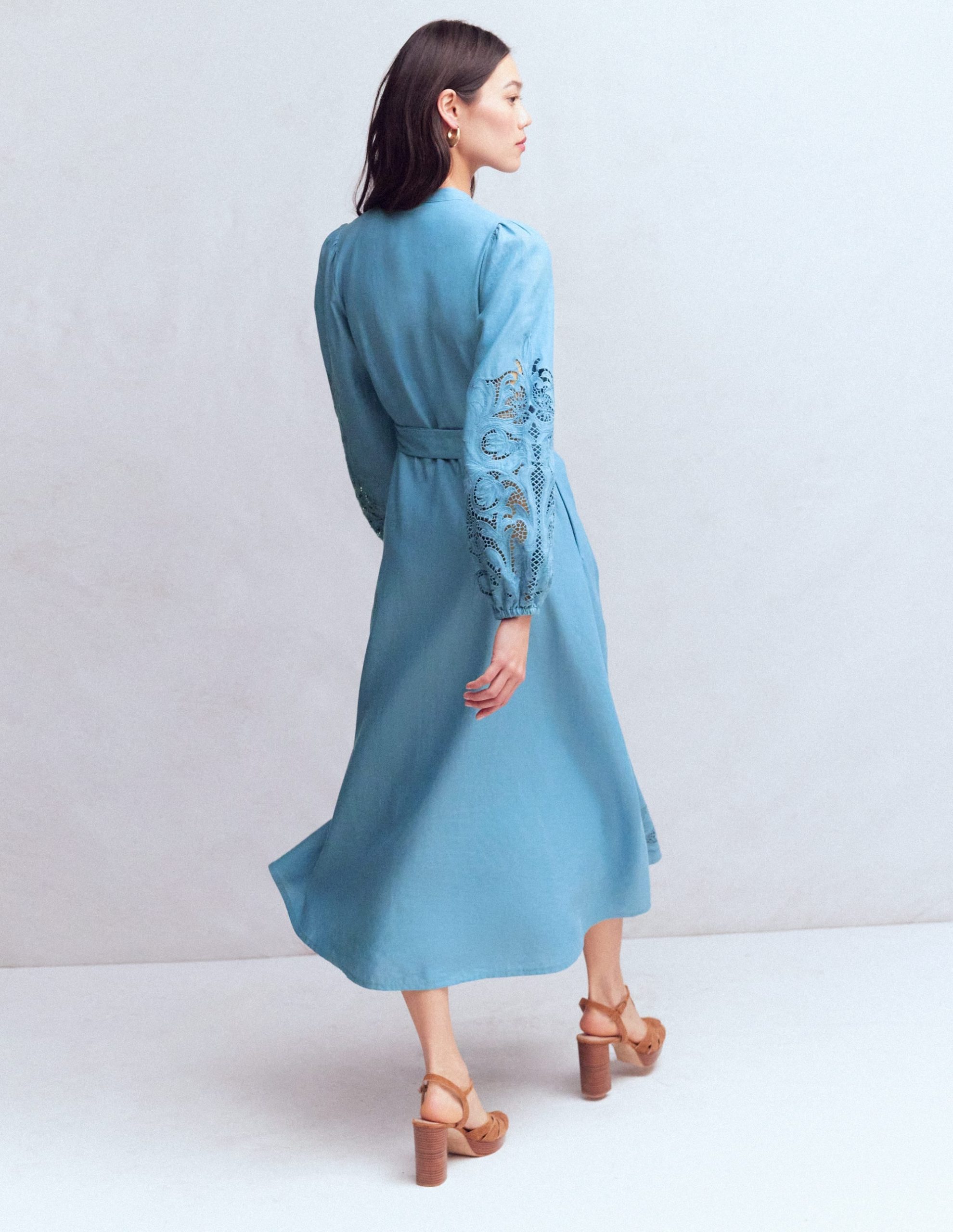 Mae Linen Blend Shirt Dress-Blue Heaven