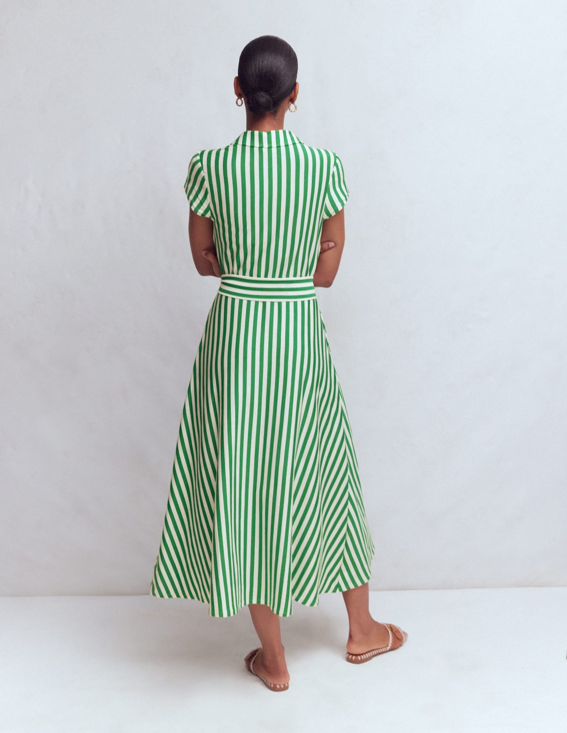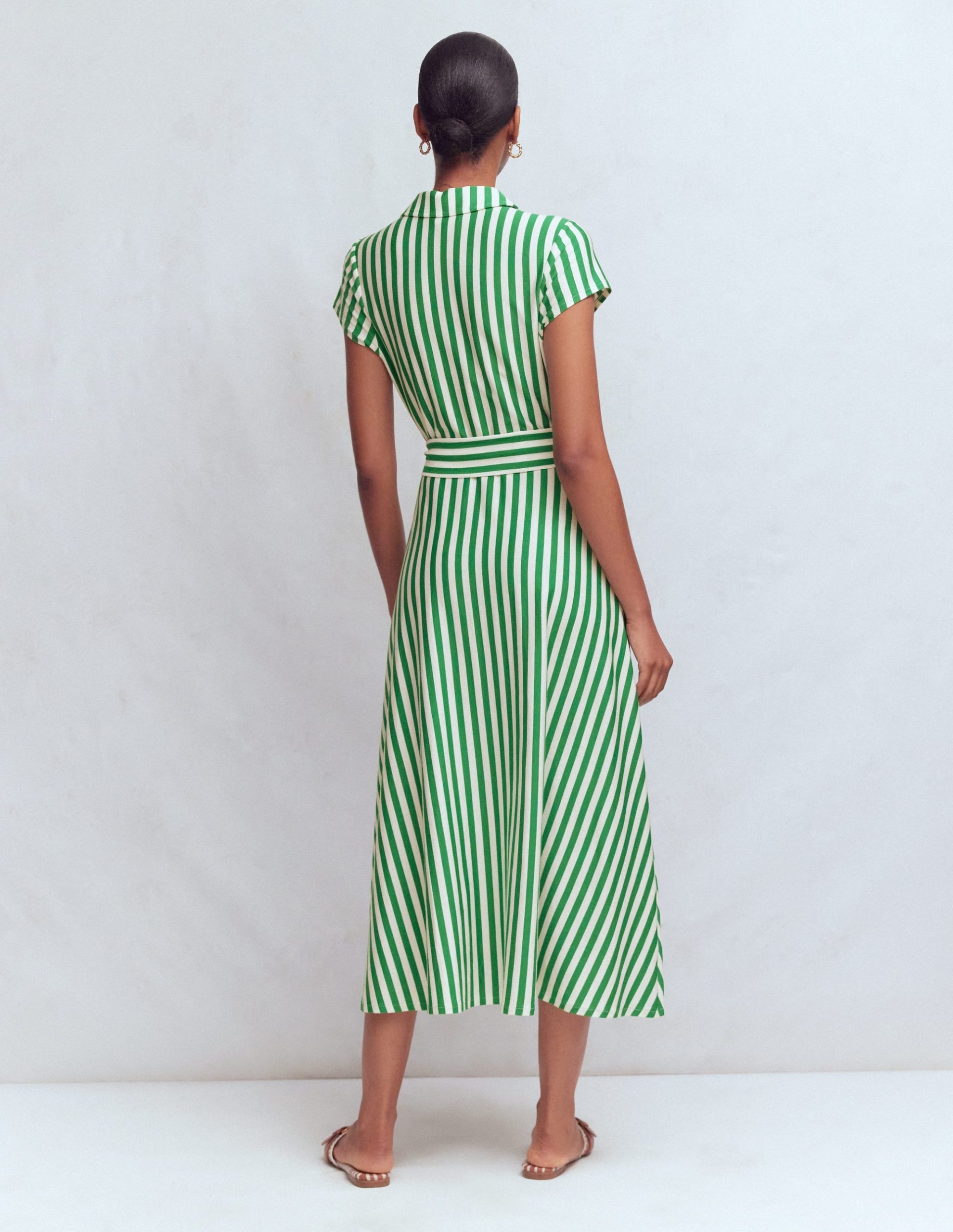 Marcia Jersey Shirt Dress-Green and Ivory Stripe