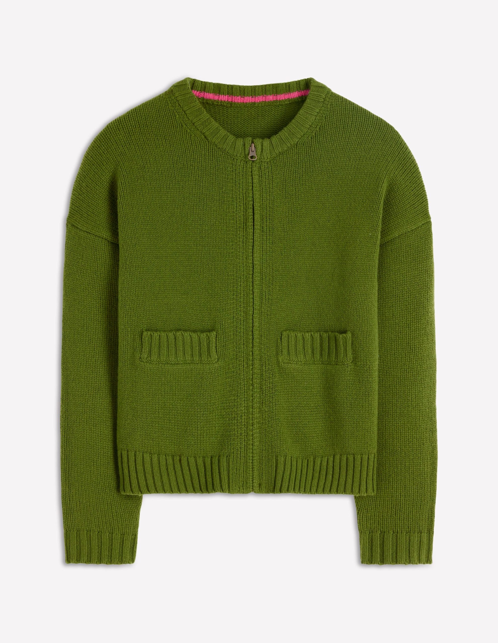 Maya is a hard-working style that acts as a jacket and cardigan in one. You’ll love the classic crew-neck design, the front zip and soft wool-blend fabric. It will look great paired with smart wide-leg trousers for work or jeans at the weekend.