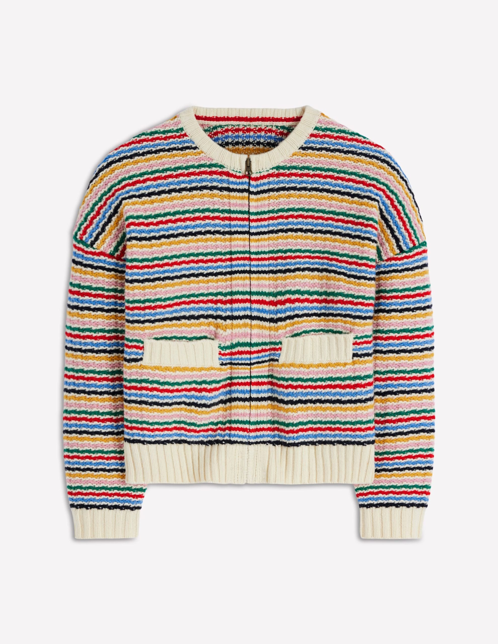 Maya is a hard-working style that acts as a jacket and cardigan in one. You’ll love the classic crew-neck design, the front zip and soft wool-blend fabric. It will look great paired with smart wide-leg trousers for work or jeans at the weekend.
