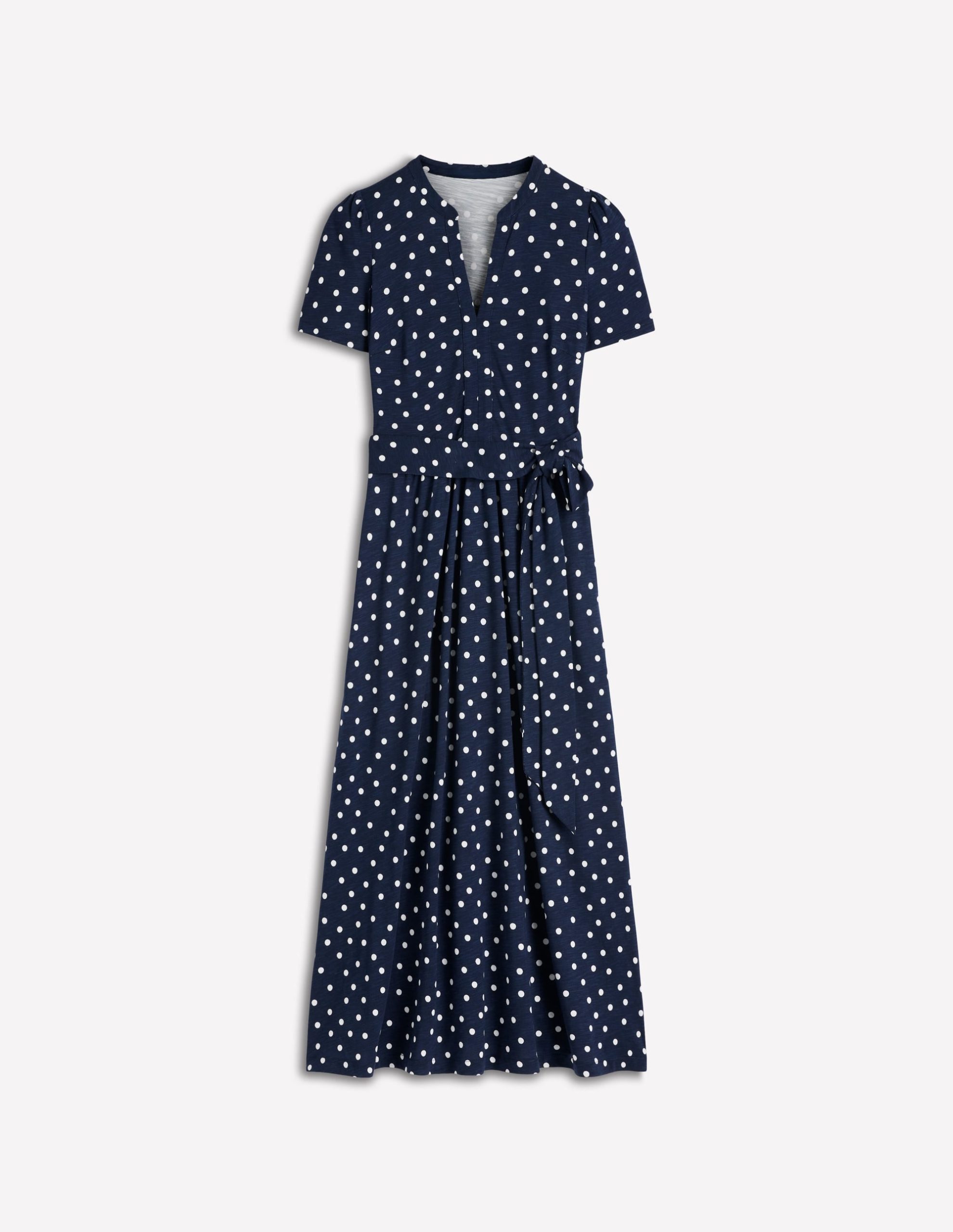 Naomi Jersey Midi Dress-Navy and Ivory. Painted Dot