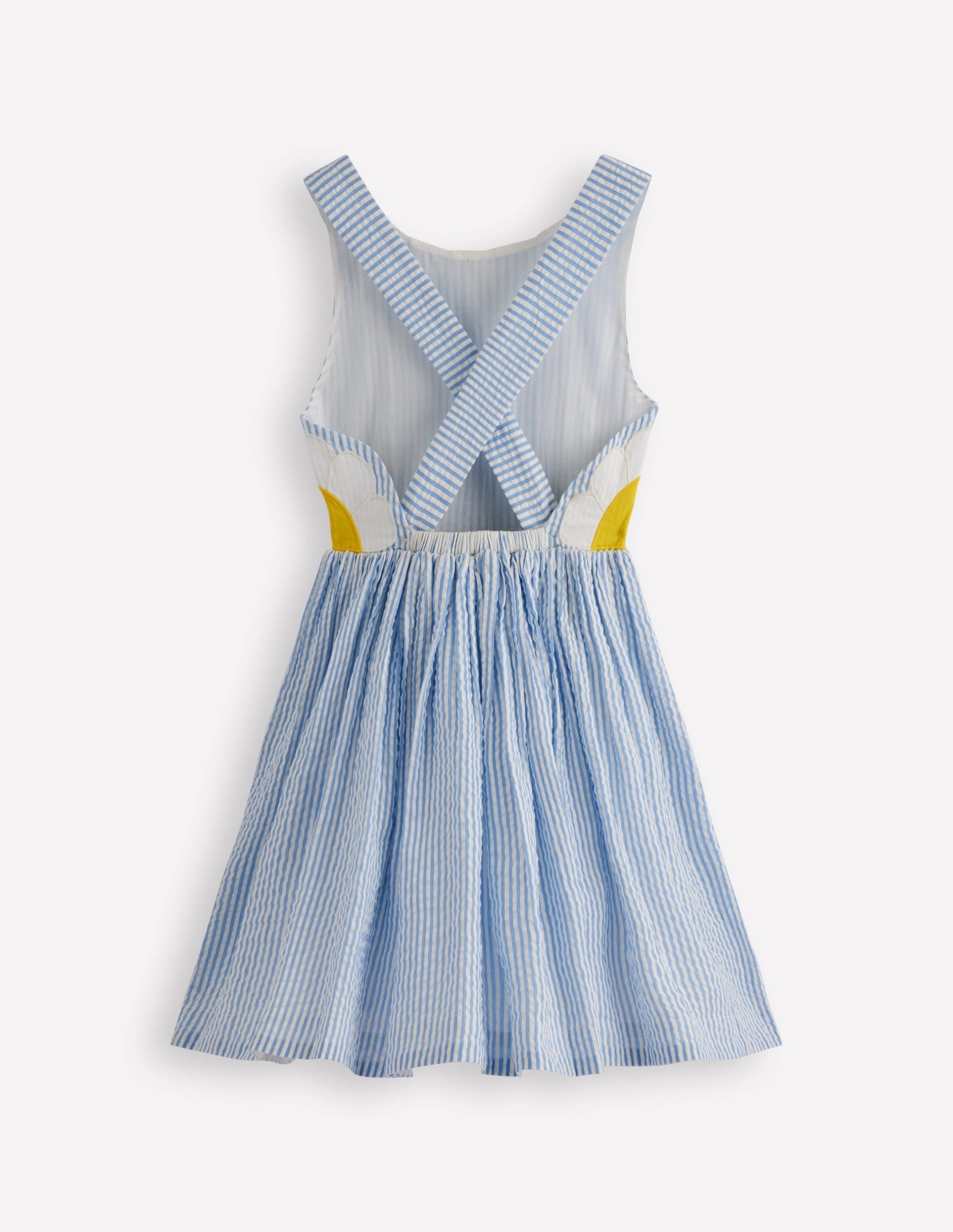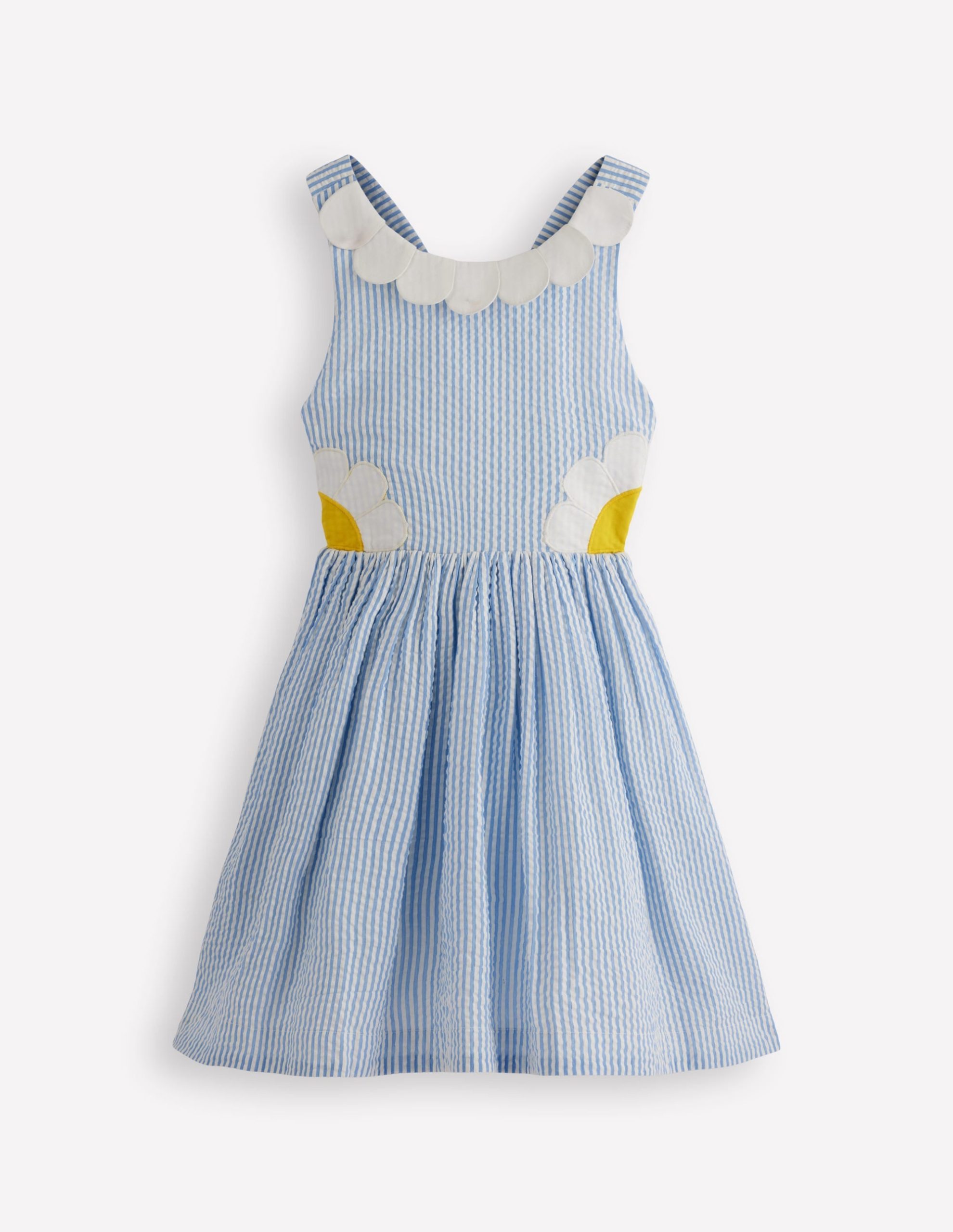 Novelty Cross-back Dress-Blue Daisy Applique