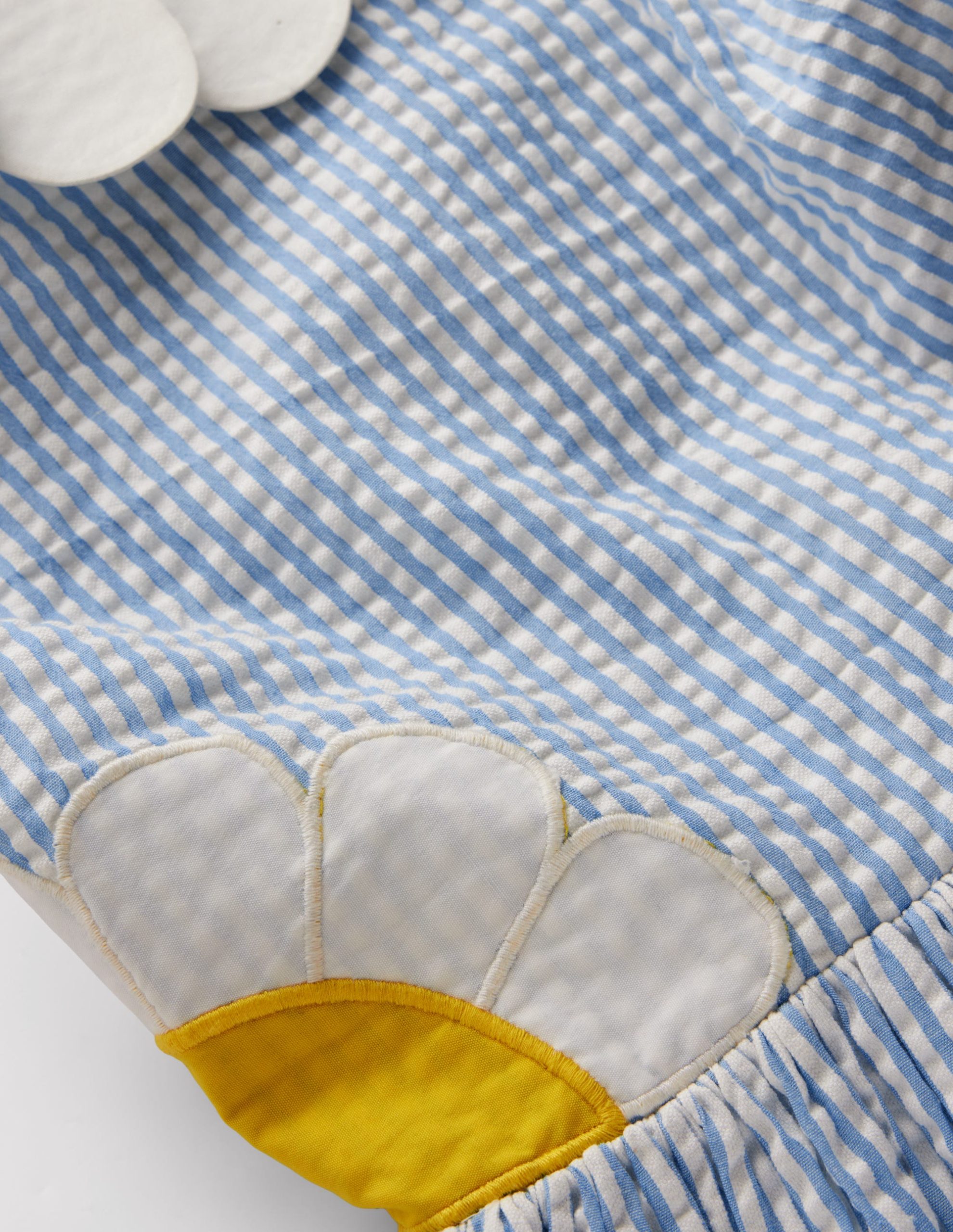 A sunny and bright dress to put a spring in Mini’s step. Crafted from pure cotton. it’s light and floaty with appliqu?? petals on the neckline and daisies on the front and back (where the straps cross over). Perfect for Easter celebrations and beyond.