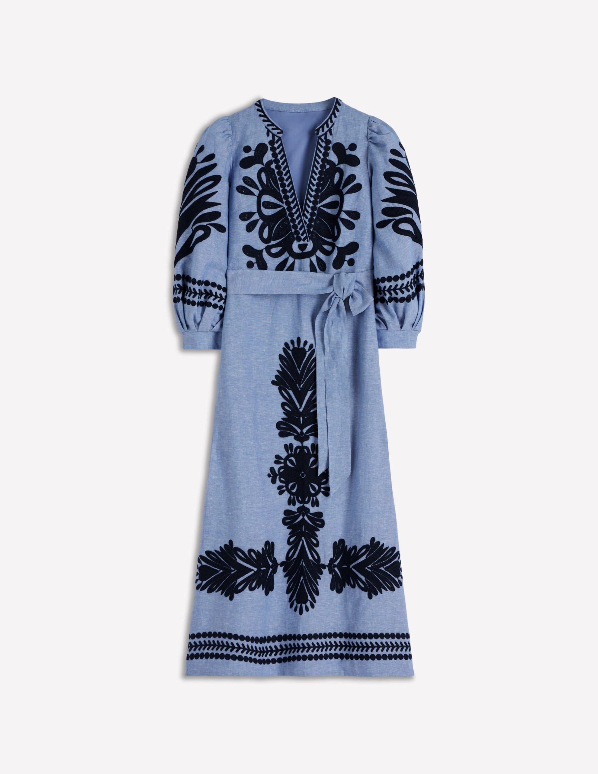 Octavia Linen Dress-Embroidered Chambray