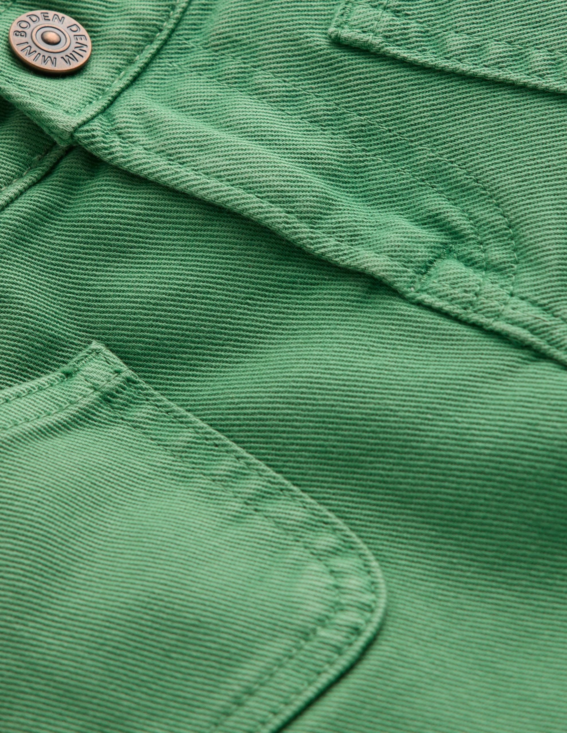 With a wide-leg shape and patch pockets (4 of them in total), these jeans are a favourite in the making. Choose between solid green or colourful stripes (complete with our matching jacket).