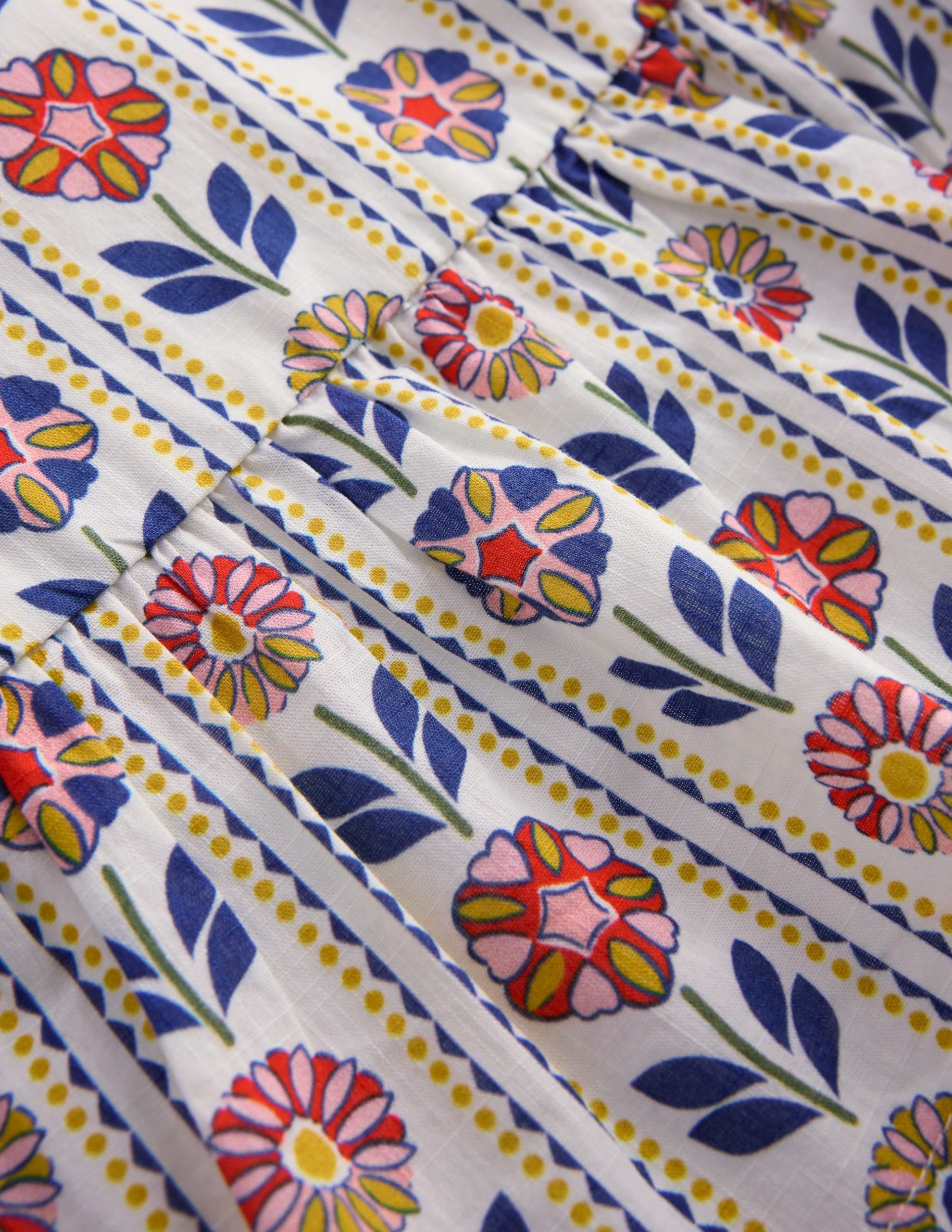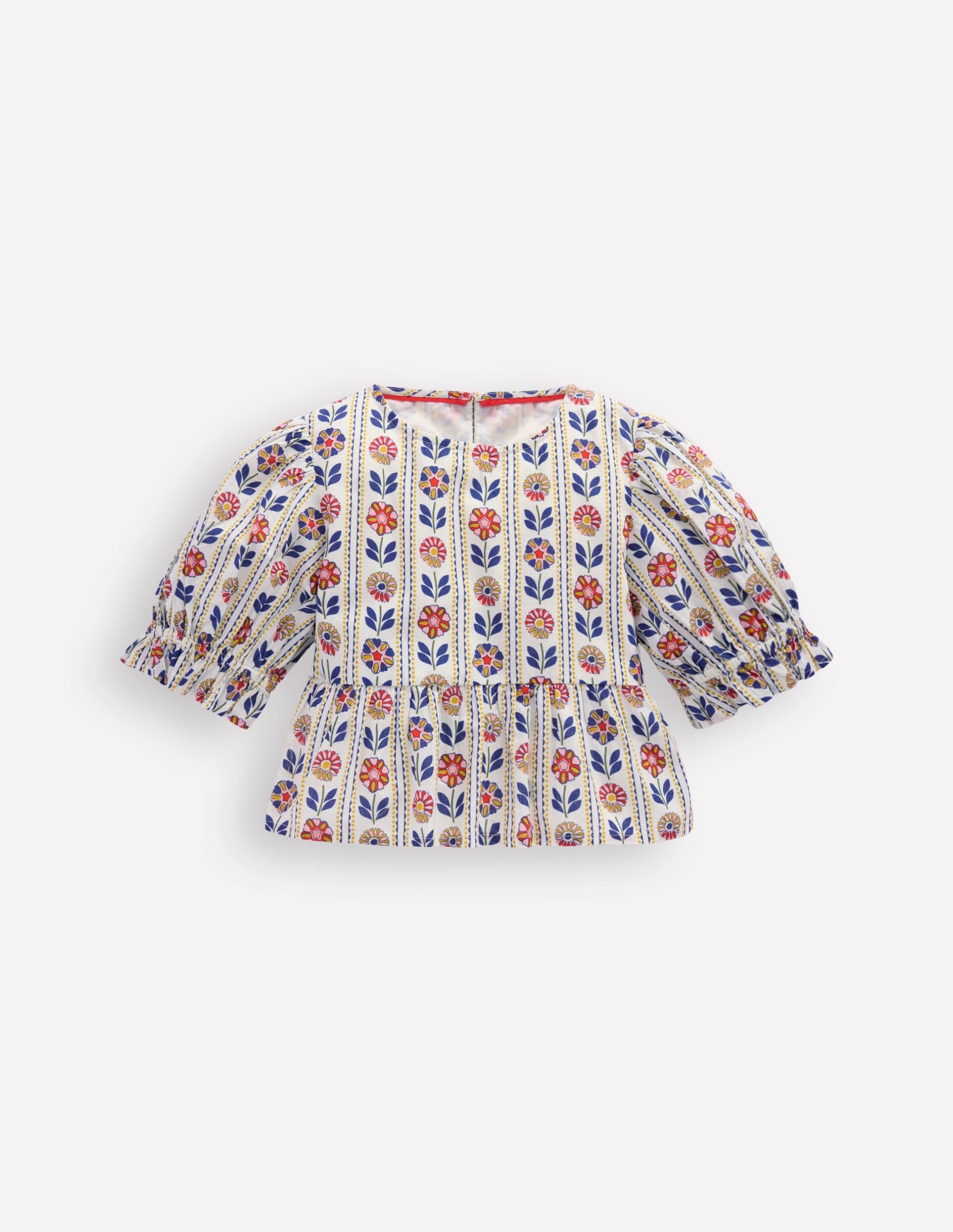 What is summer without ice-cream. sunshine and tops as floaty as clouds This woven cotton one is both light and pretty. It has puff sleeves. frills and a peplum hem. Choose from giant daisies. broderie and floral stripes and look out for the matching bottoms.