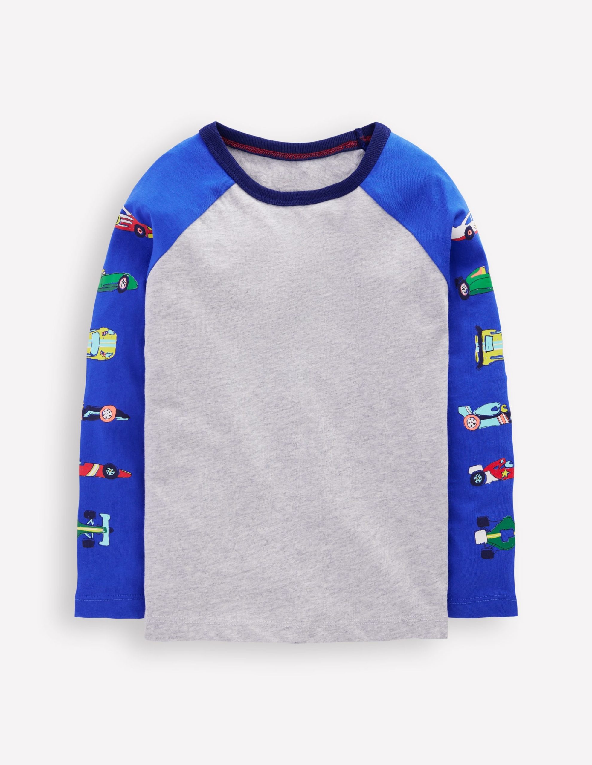 Racing cars, rainbows and even a dog Christmas tree: we’ve taken a pure cotton colourblock raglan long-sleeve T-shirt and made it fun. Pair with jeans or cords for easy everyday outfits.