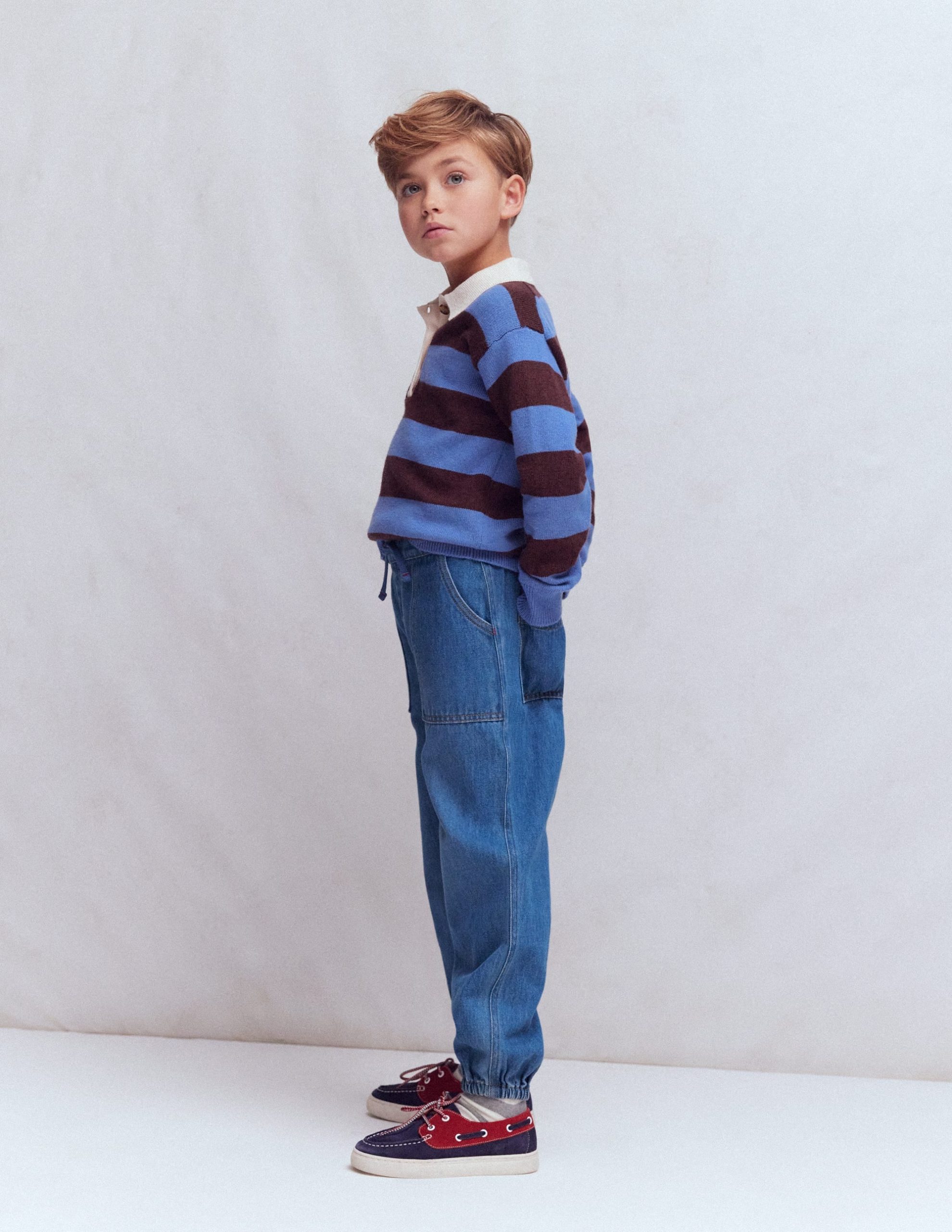 Jeans, but make them extra comfy (and cool). This pair has an easy pull-on elasticated waistband and a relaxed fit with cuffs around the ankles. The big patch pockets are handy for, well, hands – and other important things.