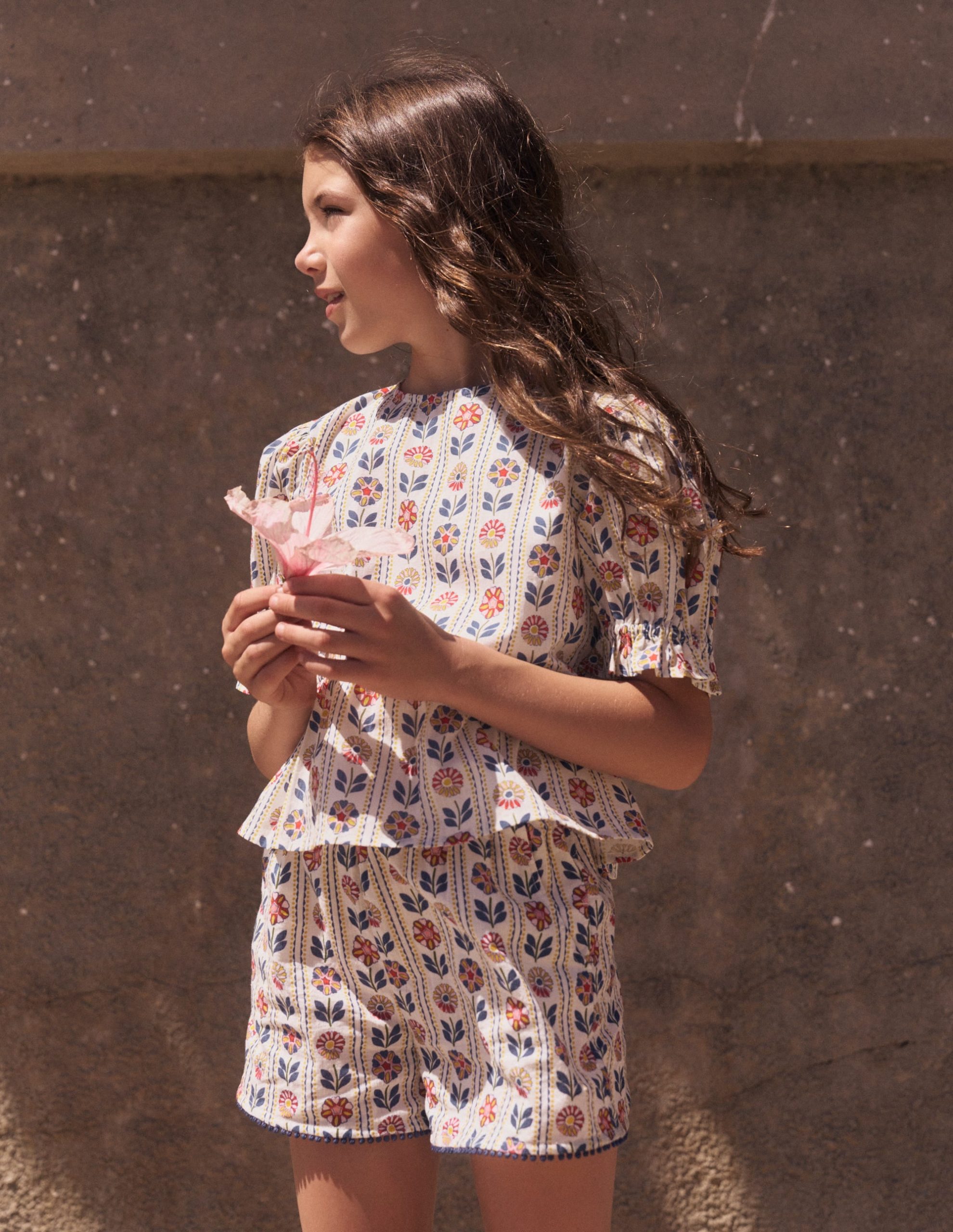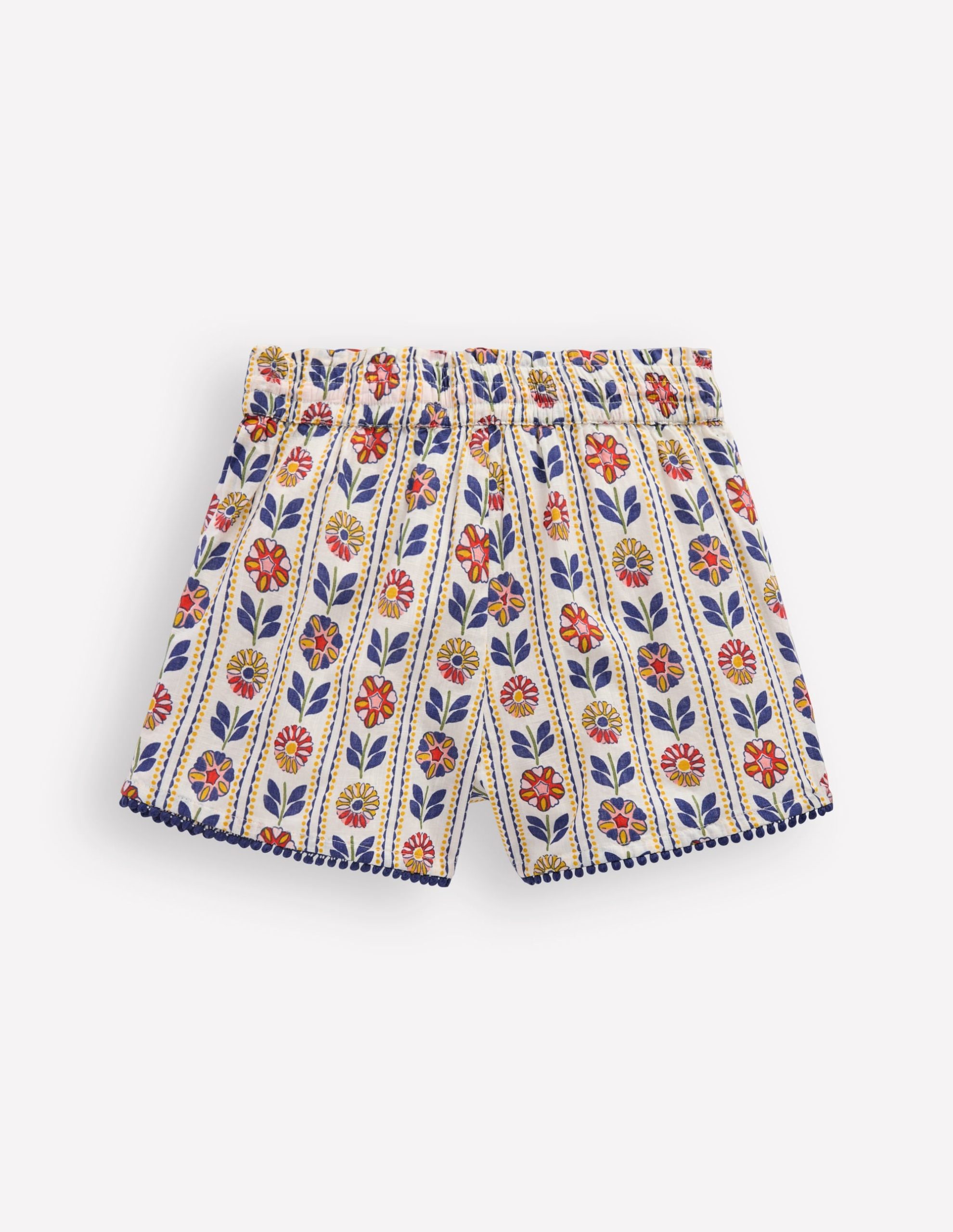 Holiday shorts go up and down like a yo-yo as Minis leap from pool to beach each day. That’s why we’ve made these cotton shorts with an elasticated drawstring waist in a loose fit. They’re pretty too: choose from stripy. floral and other summery prints.