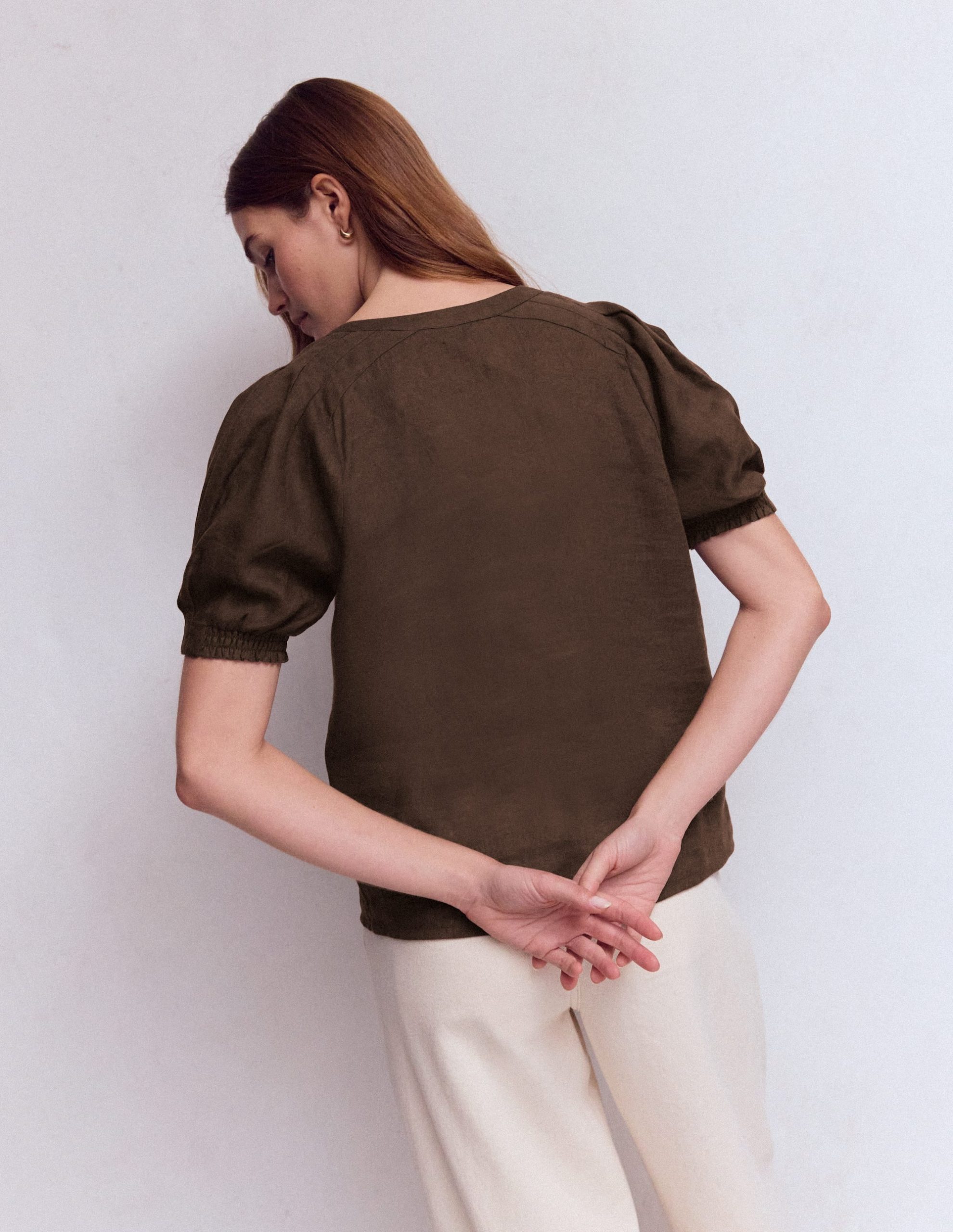 Rae Linen Top-Brown