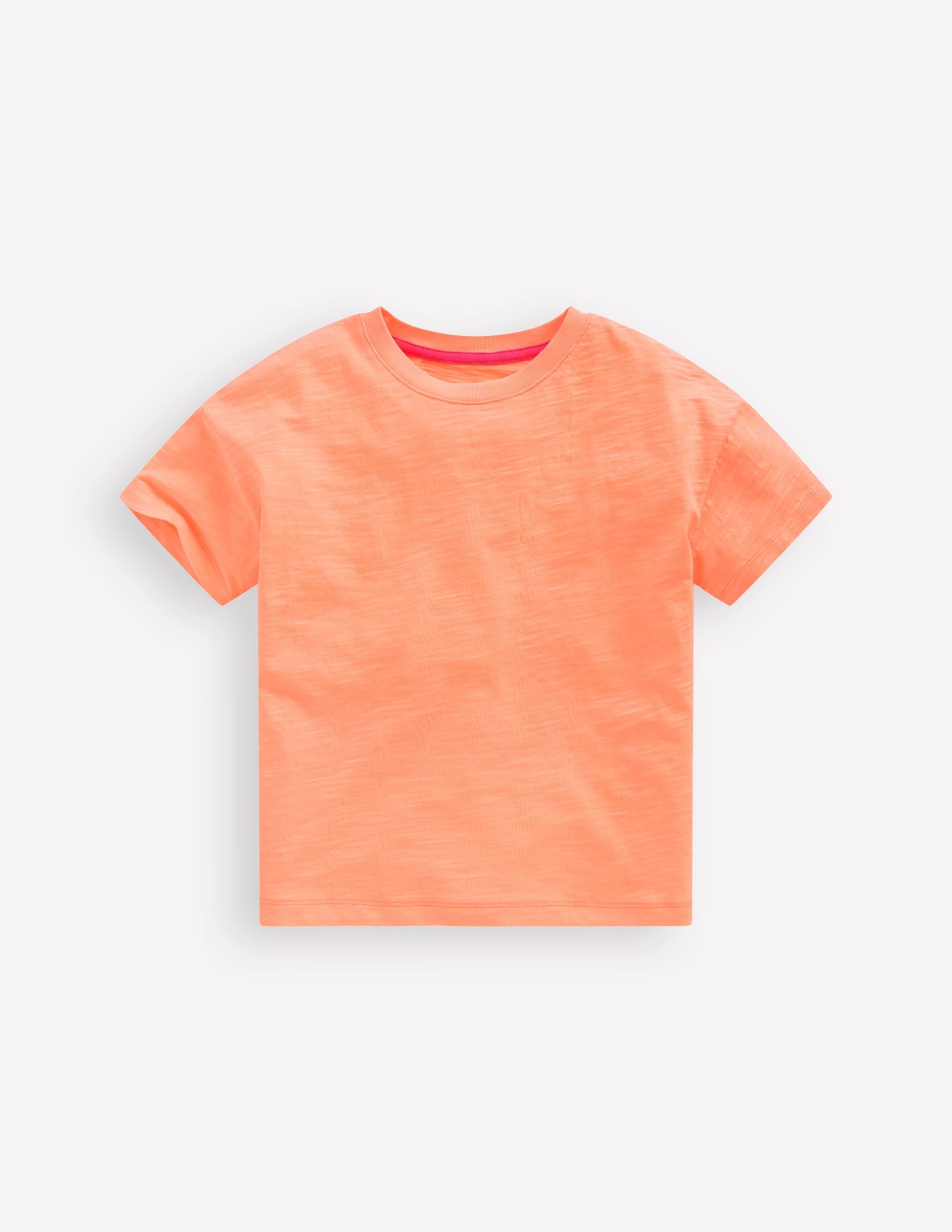 Minis will shine bright like hi-vis beacons of fun in our neon T-shirt. The soft cotton and loose fit mean it’s comfortable and easy to run. jump and skip around in all day. Your little one will also be easy to spot on busy beaches. parks and bouncy castles too.
