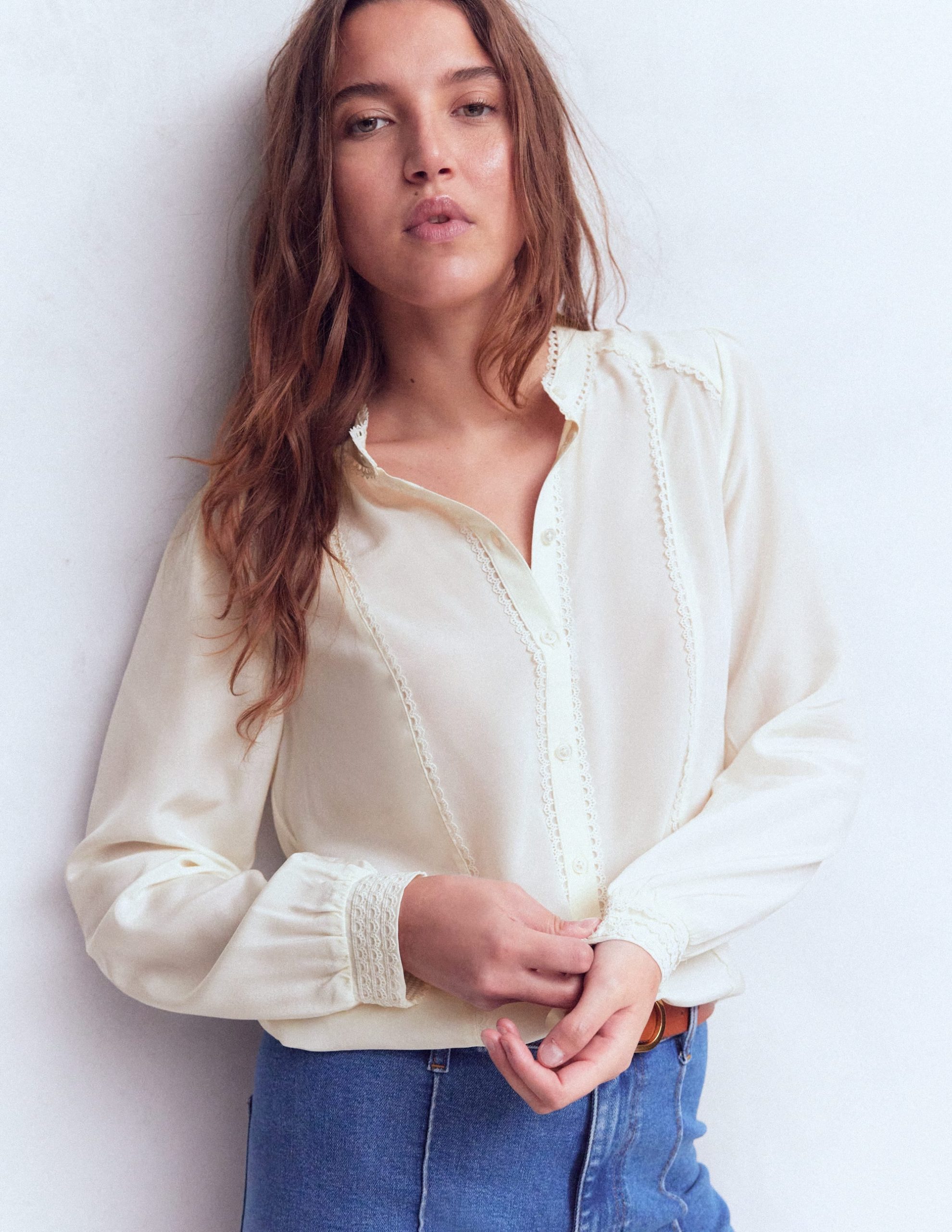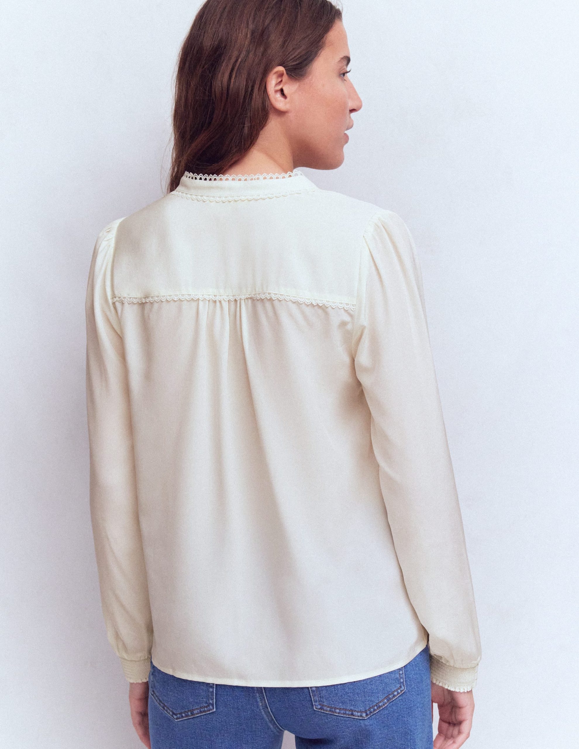 Your hard-working wardrobe deserves a little luxury. Rhea delivers as a 100% silk top with a delicate embroidered trim and simple collarless cut. Choose from a variety of colours and prints. It’ll go with everything and feel soft on your skin.