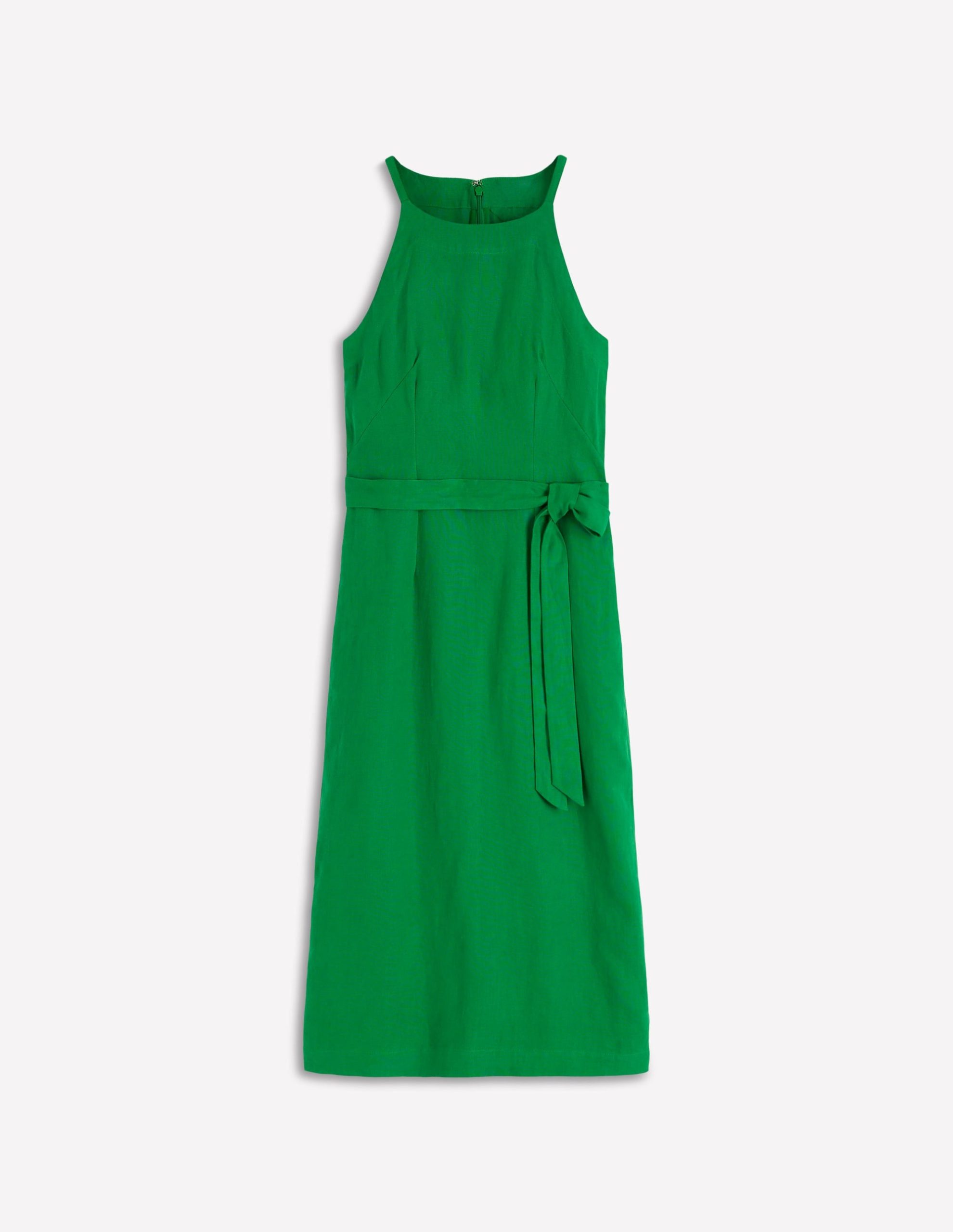 Breathable linen and a halter neck give this midi dress a fresh feel for the warmer months ahead. Choose from grounded neutral shades and bright block colours.