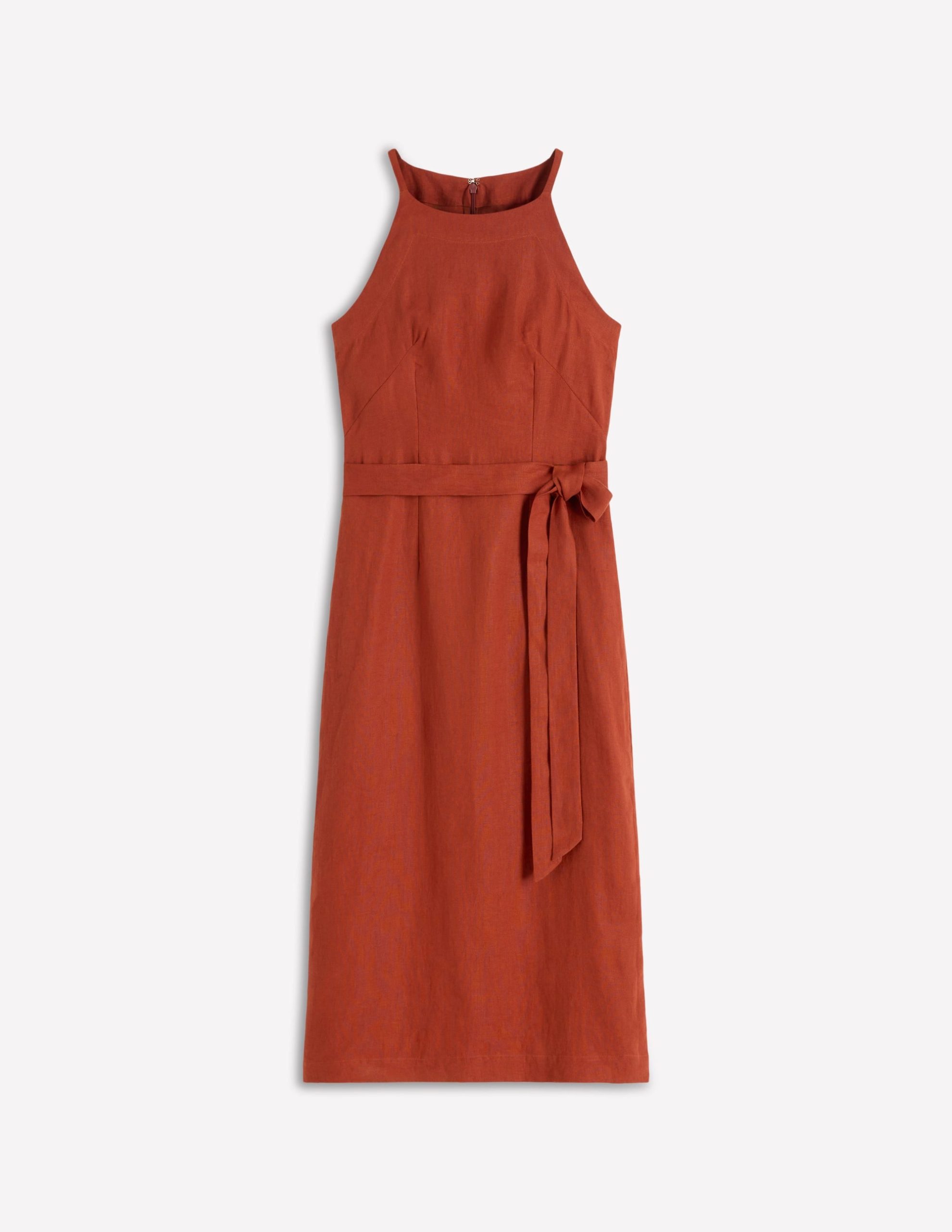 Breathable linen and a halter neck give this midi dress a fresh feel for the warmer months ahead. Choose from grounded neutral shades.